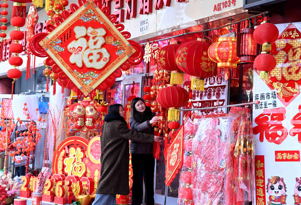 春节临近,各地年货市场年味渐浓,人们忙着选购春节饰品,迎接新春佳节。图为1月20日,市民在河北省石家庄市长安区南三条年货市场挑选春节饰品。