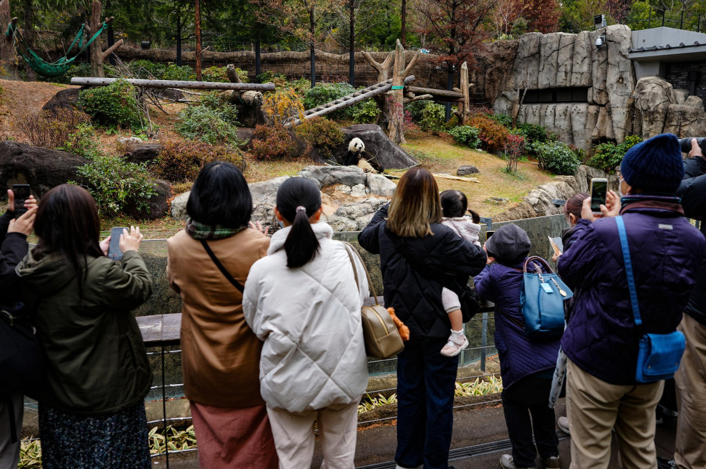 2025年12月25日,在日本东京的上野动物园,游客拍摄大熊猫“晓晓”。