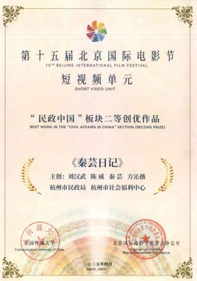 去年,两部微电影让很多人知道了“秦芸”这个名字。《秦芸日记》和《一念一生》,分别从不同角度讲述作为社工的秦芸,如何陪伴社会福利中心的老人们走过生命的最后旅程。其中,《秦芸日记》还拿到了北京国际电影节短视频单元“民政中国”板块的二等奖。