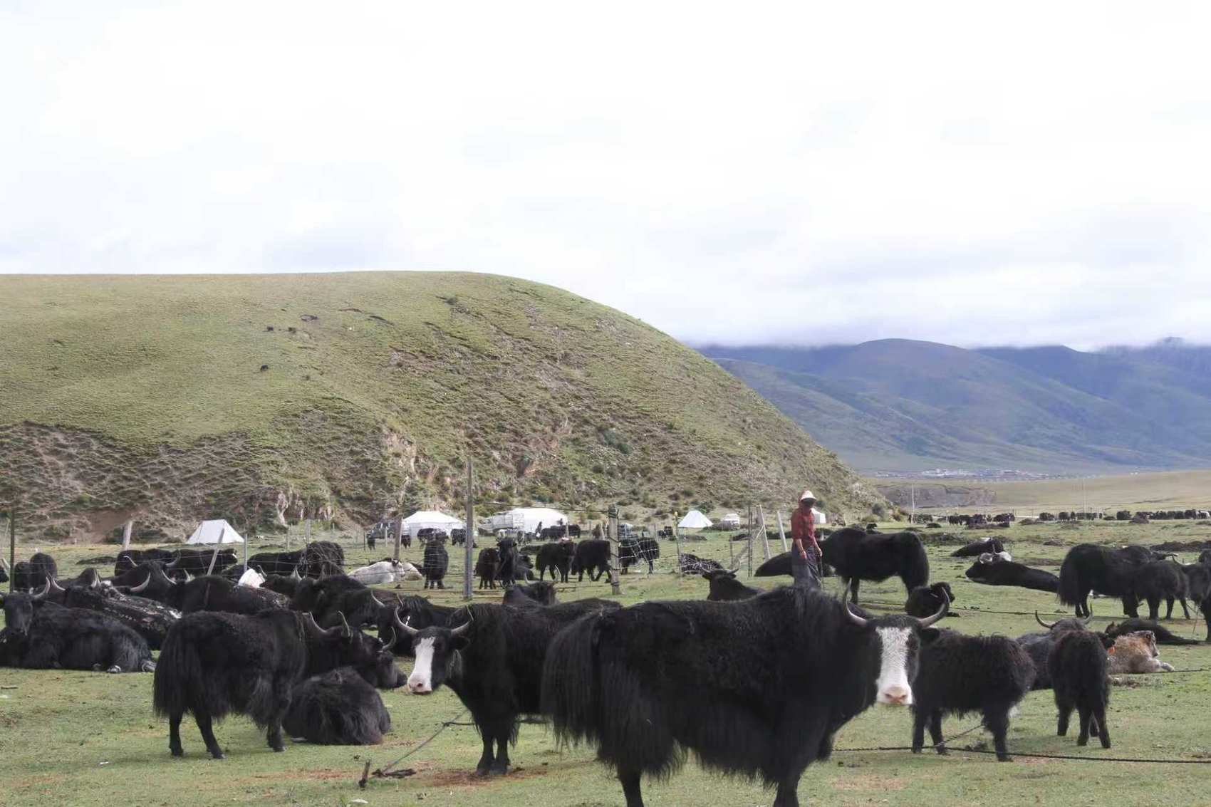 广袤的草原上牦牛成群