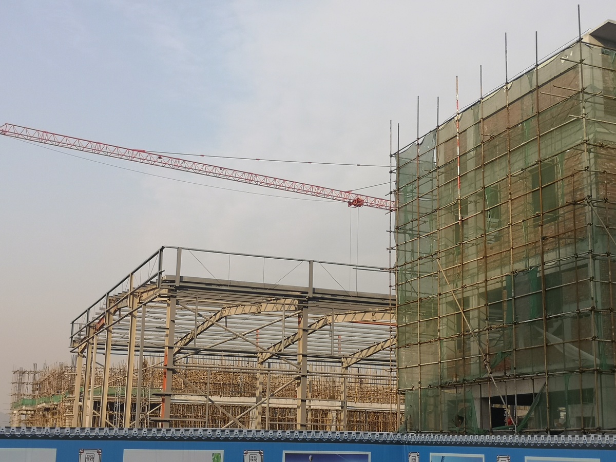 步行至工地中央,项目楼栋布局在头脑中成形。环顾整个项目,数了数,总共9栋楼。“这些楼包括仓库、办公楼、厂房。”指着一个栋最高的楼,张亮说:“整个项目属于危险性较大的建筑,曾一度为之犯难。”