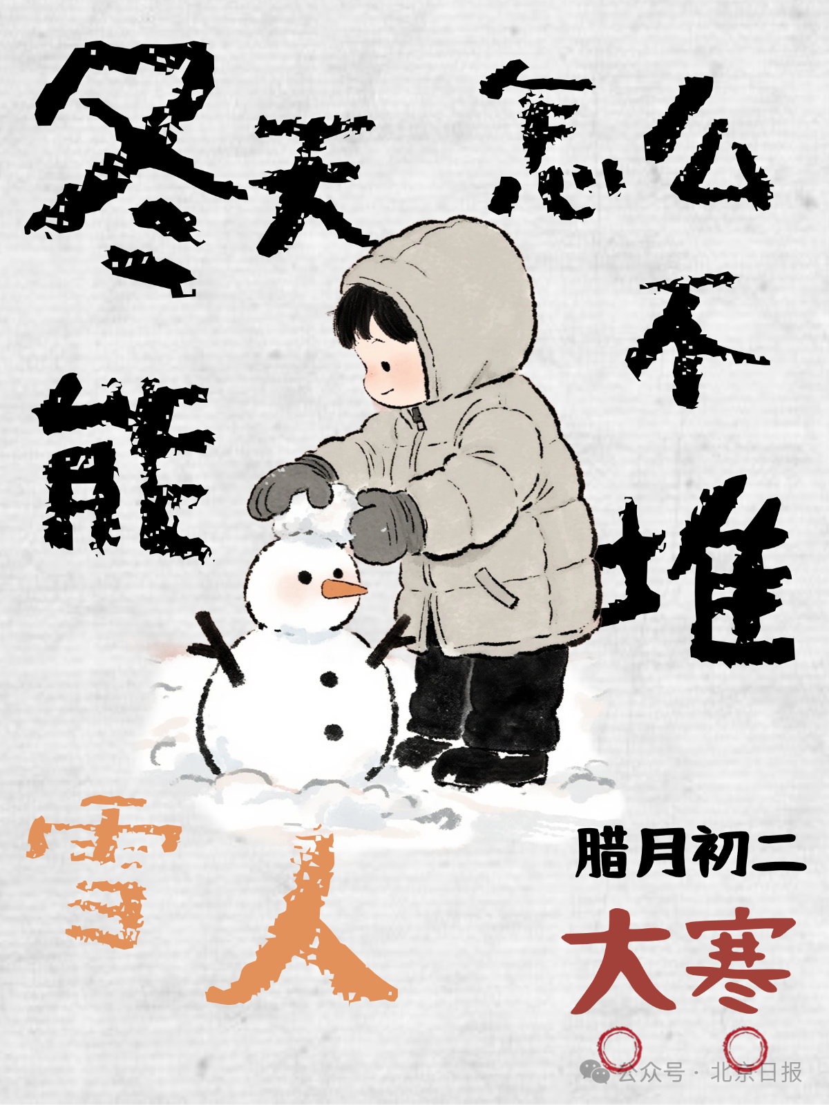 大寒,冬天行至最后一站。 那些冬日里心心念念的事,你都完成了吗?不如趁一场雪轻轻落下,唤上二三好友,堆个憨态可掬的雪人。 冰面冻得坚实,欢闹也就拉开了序幕——滑冰车、骑冰上自行车……都是冬天限定的快乐。 窗外寒意阵阵,此时与家人围坐,共煮一锅暖意蒸腾的火锅。舌尖上也有冬日的专属美味:北方的消寒糕软糯可口,南方的糯米饭泛着油香,冰糖葫芦、腊八粥、腊八蒜……每一样,配合冬日的氛围,才够味。寒极,春便有了回音。大寒之后,即立春。让我们在这最后的凛冽中,静静积蓄所有温暖与期盼,等待下一程——万物新生,天地回暖。大寒,愿你暖暖的。监制:刘昊制作:鲍佳宇编辑:车社