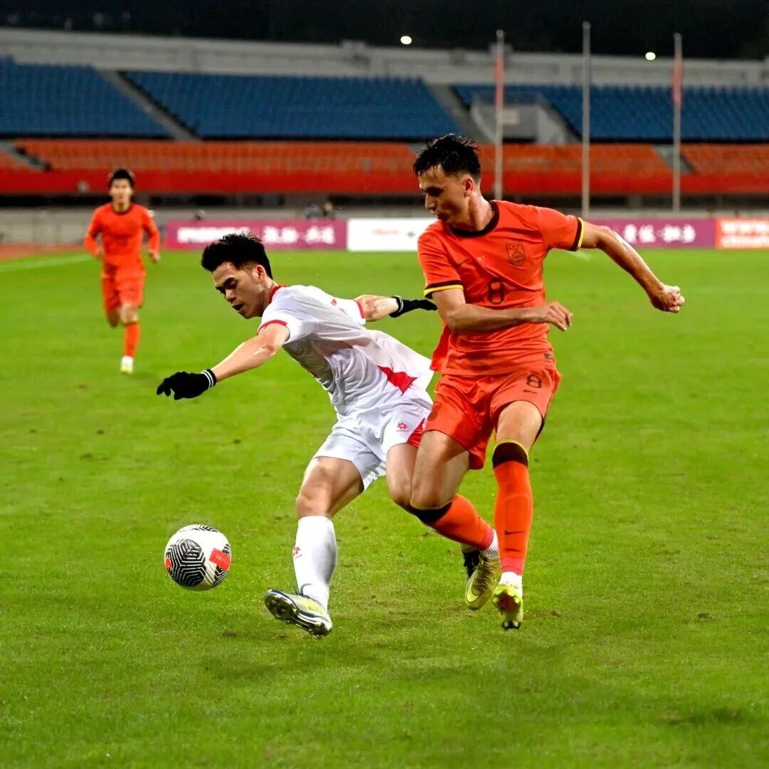 中国队球员向余望(左)在比赛中射门。新华社记者 王海洲 摄