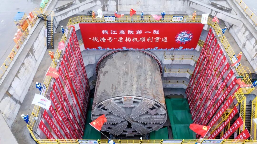 其中,穿行于钱塘江下的钱塘江高铁盾构隧道堪称“咽喉工程”。这条被誉为“钱江高铁第一隧”的通道,北起海宁周王庙,南至杭州钱塘区,全长5328米,其中盾构段长3704米,设计时速达350公里,近日已完美贯通。
