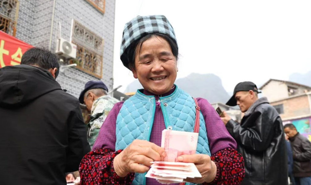 贵州省罗甸县沫阳镇大井村村民拿到2025年度分红后喜笑颜开。