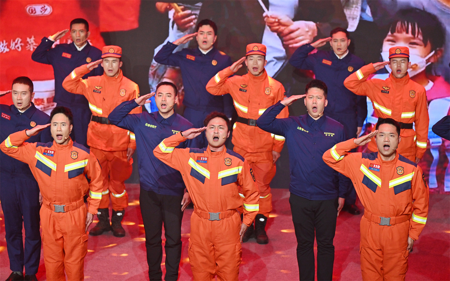 “赴险・忠诚护民”篇章中,一个个生死救援的故事令人动容。原阿坝州消防救援支队消防员刘昊龙讲述了在民房火灾中营救被困儿童、在石化基地险情中与死神搏斗的惊险经历;雅安“发明家消防员”朱曾华带着女儿和儿子分享了因地震救援遗憾而走上装备研发之路的坚守;甘孜州泸定县得志街消防救援站郭正富与爱人饶克芳的对话,道出了应急人家庭“平安回家”的朴素期盼,让现场观众热泪盈眶。