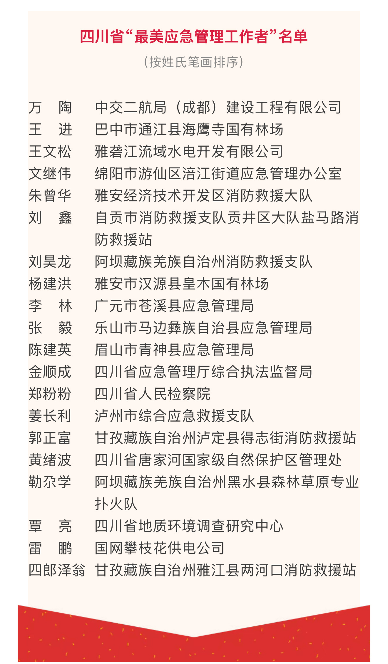 本次活动由四川省委宣传部、应急管理厅、省林业和草原局、省总工会联合举办。本次宣传选树的20名“最美应急管理工作者”来自应急、消防、林草、检察、能源企业等基层一线,是相关单位从百余份推荐材料中,经资格审核、专家评审、视频展播、网上公示等严格程序评选产生。