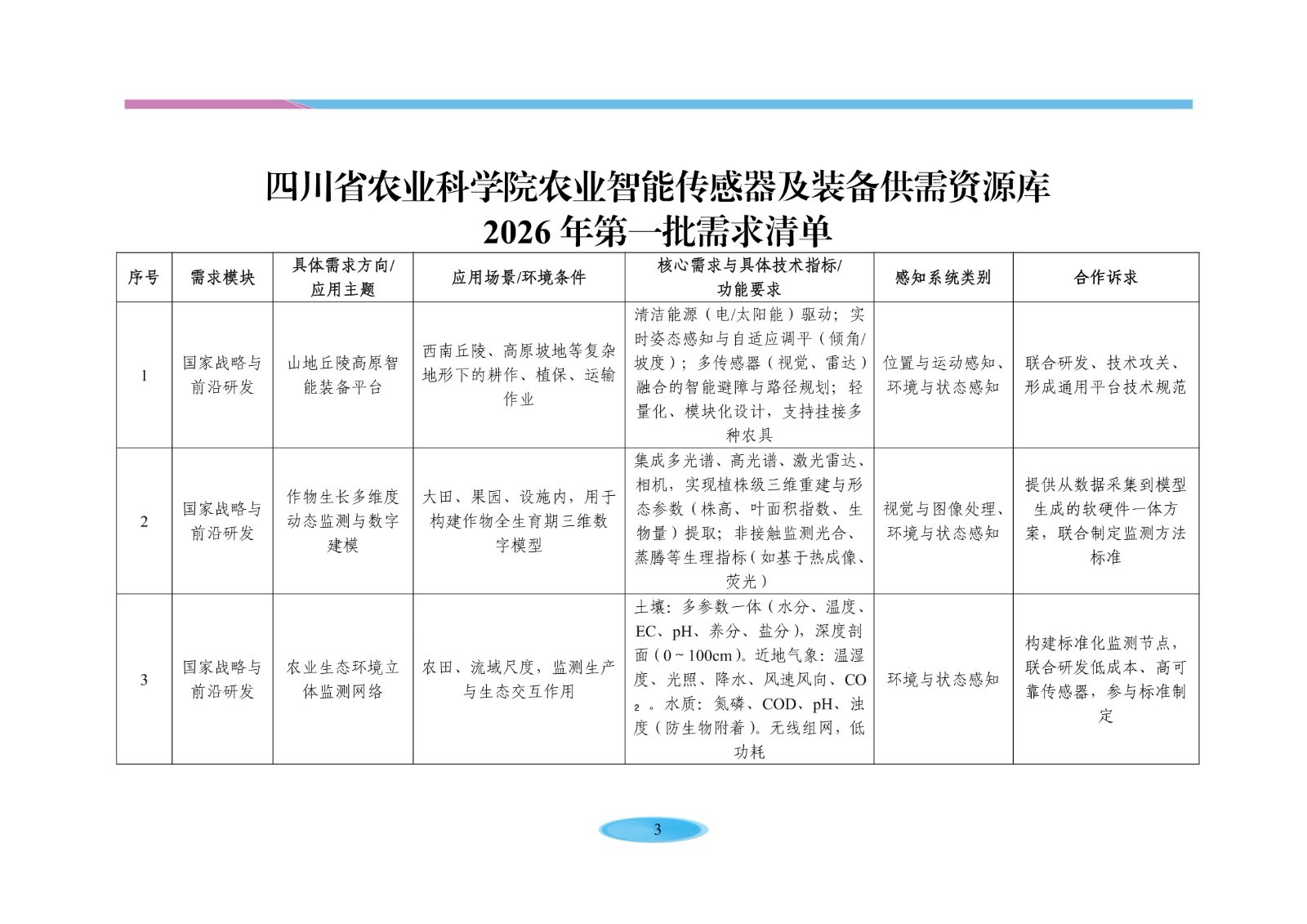 1月21日,四川省农业科学院正式发布2026年第一批农业智能传感器及装备供需资源库需求及供给清单。这份清单的发布不仅标志着四川农业智能化供需对接工作进入实质性阶段,也为全省乃至全国的农业现代化提供了新鲜的“血液”。