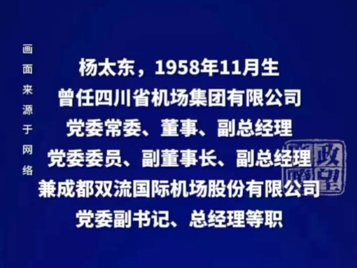 C视频丨退休近7年,四川省机场集团有限公司原党委委员、副董事长、副总经理杨太东被查