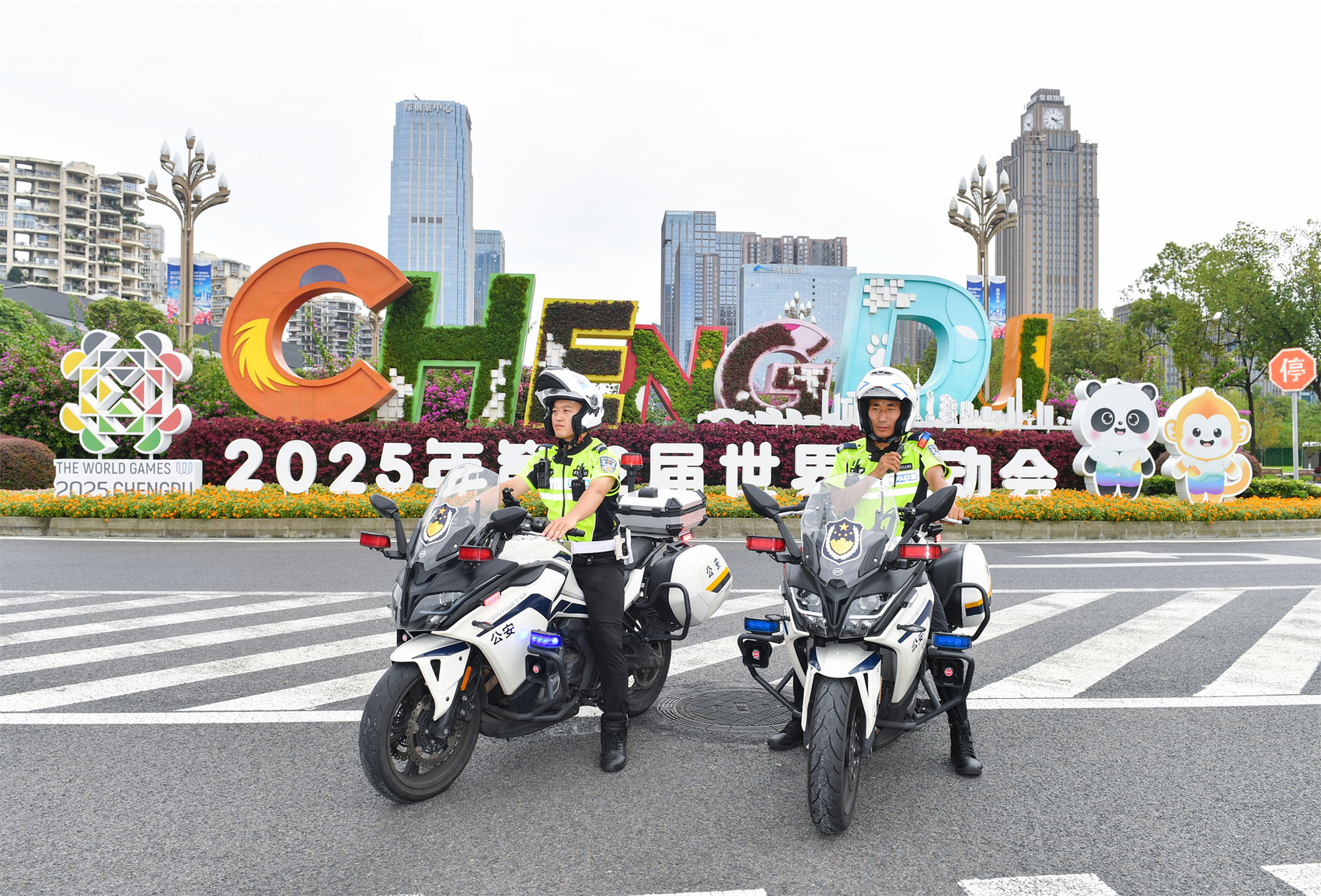 成都交警在世运村B区附近巡逻,确保周边交通畅通