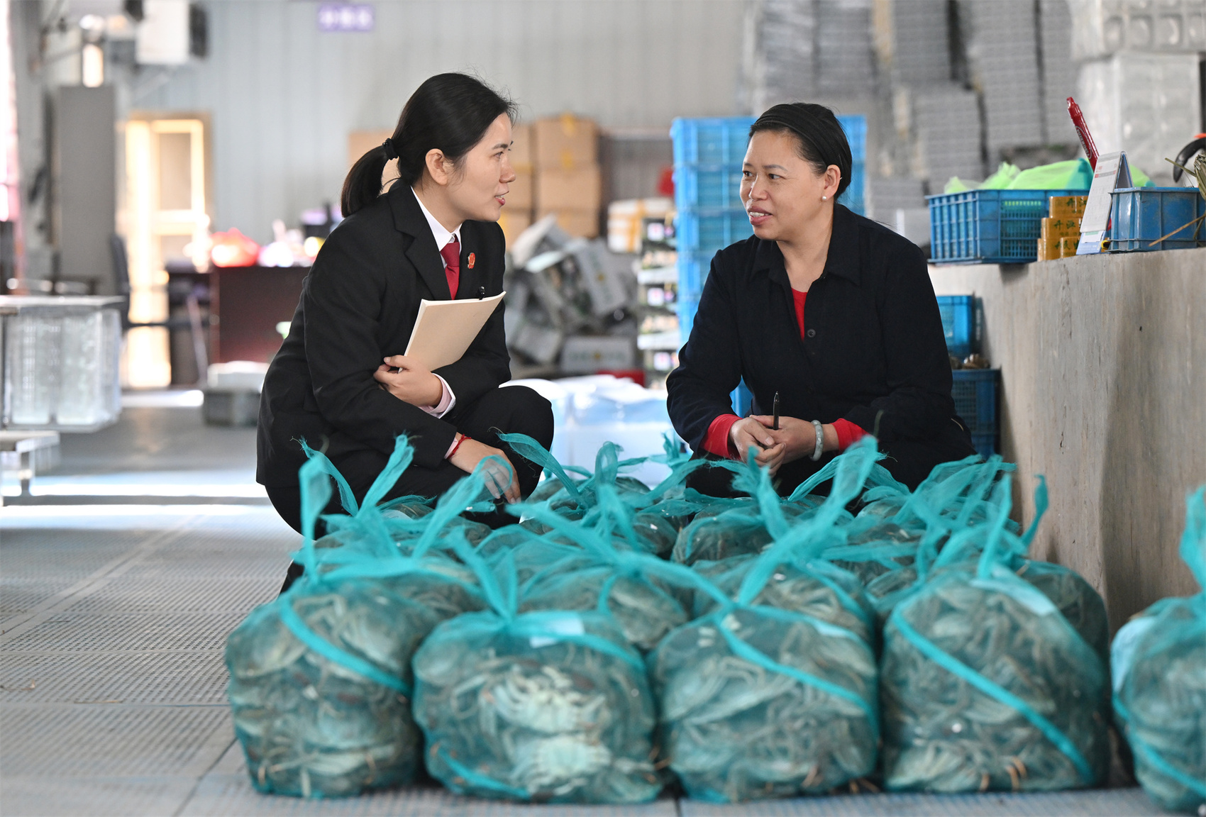 2025年11月,达州市开江县人民法院干警在珍珠、大闸蟹养殖基地开展普法宣传