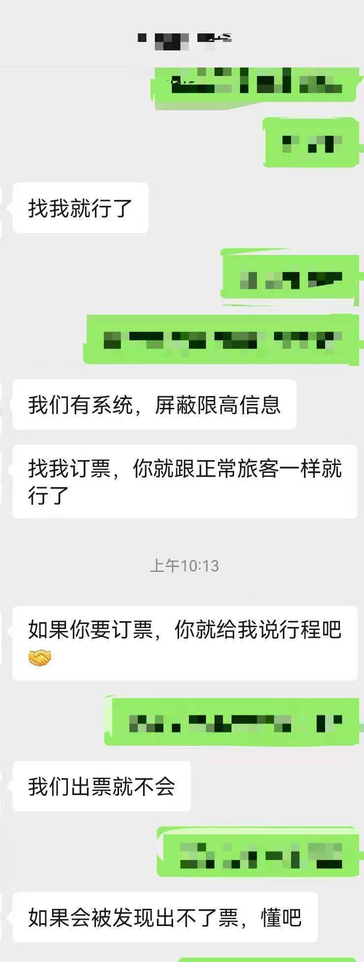 有中介称,可以帮助“限高”人员购票,系统能屏蔽“限高”信息。