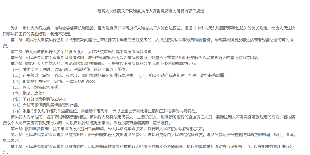 最高人民法院关于限制被执行人高消费及有关消费的若干规定