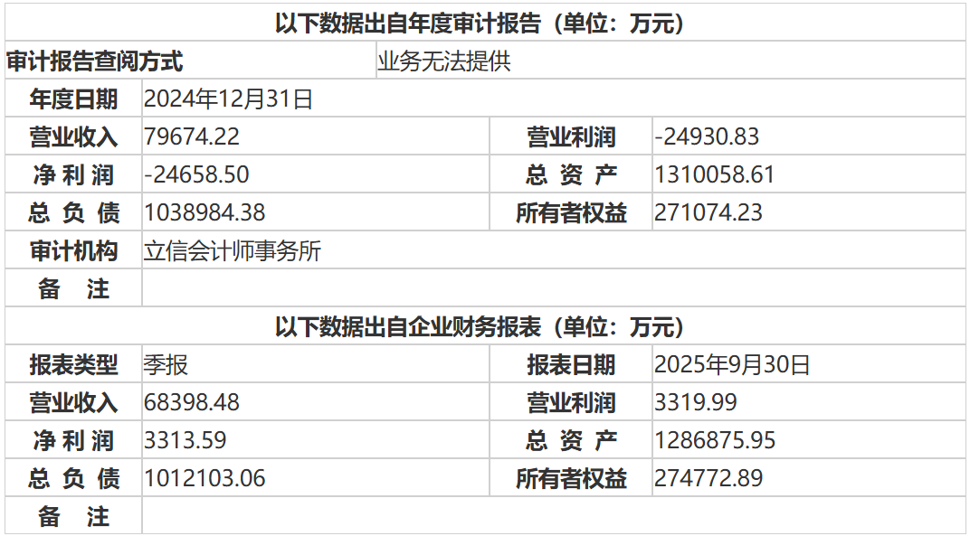 财务数据方面,2024年及2025年前三季度,华电木里河公司分别实现营业收入7.97亿元、6.84亿元,净利润-2.47亿元、3313.59万元。截至2025年9月底,公司总资产为128.69亿元,总负债为101.21亿元,所有者权益为27.48亿元,资产负债率达78.65%。