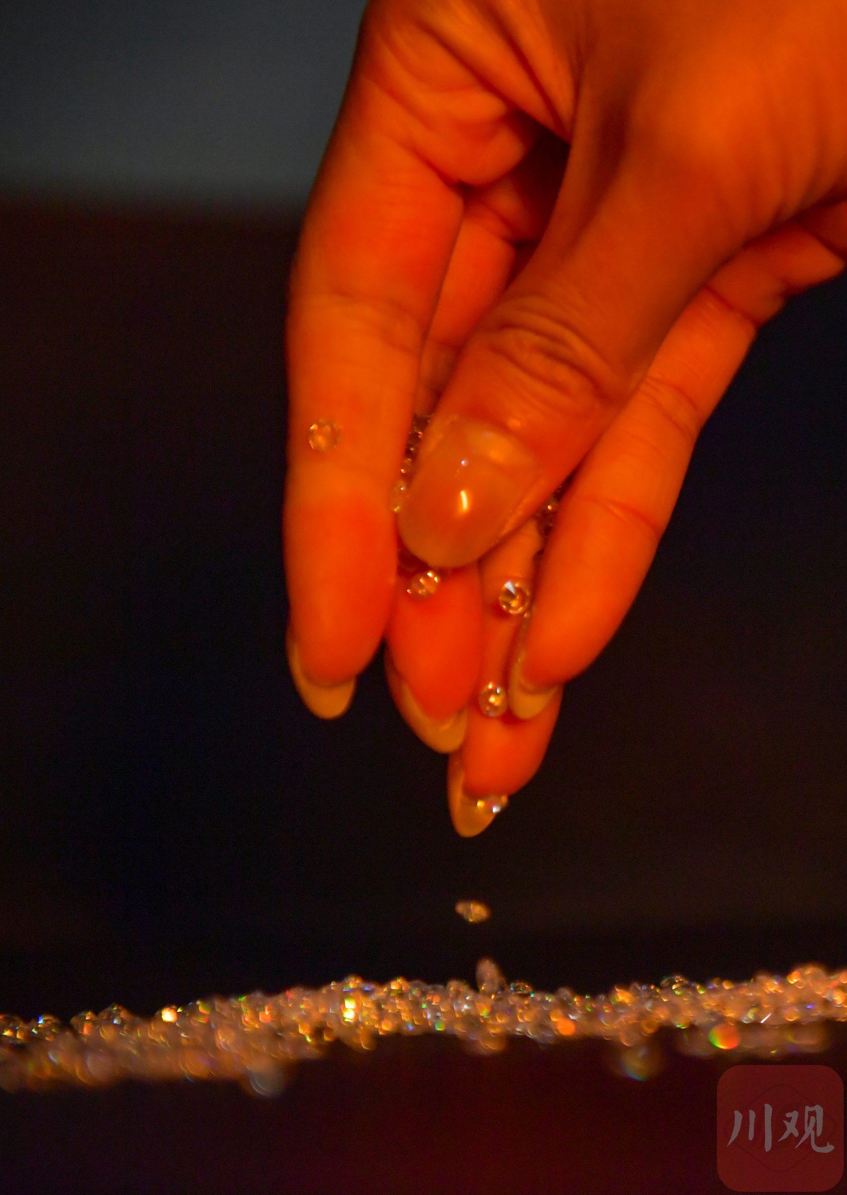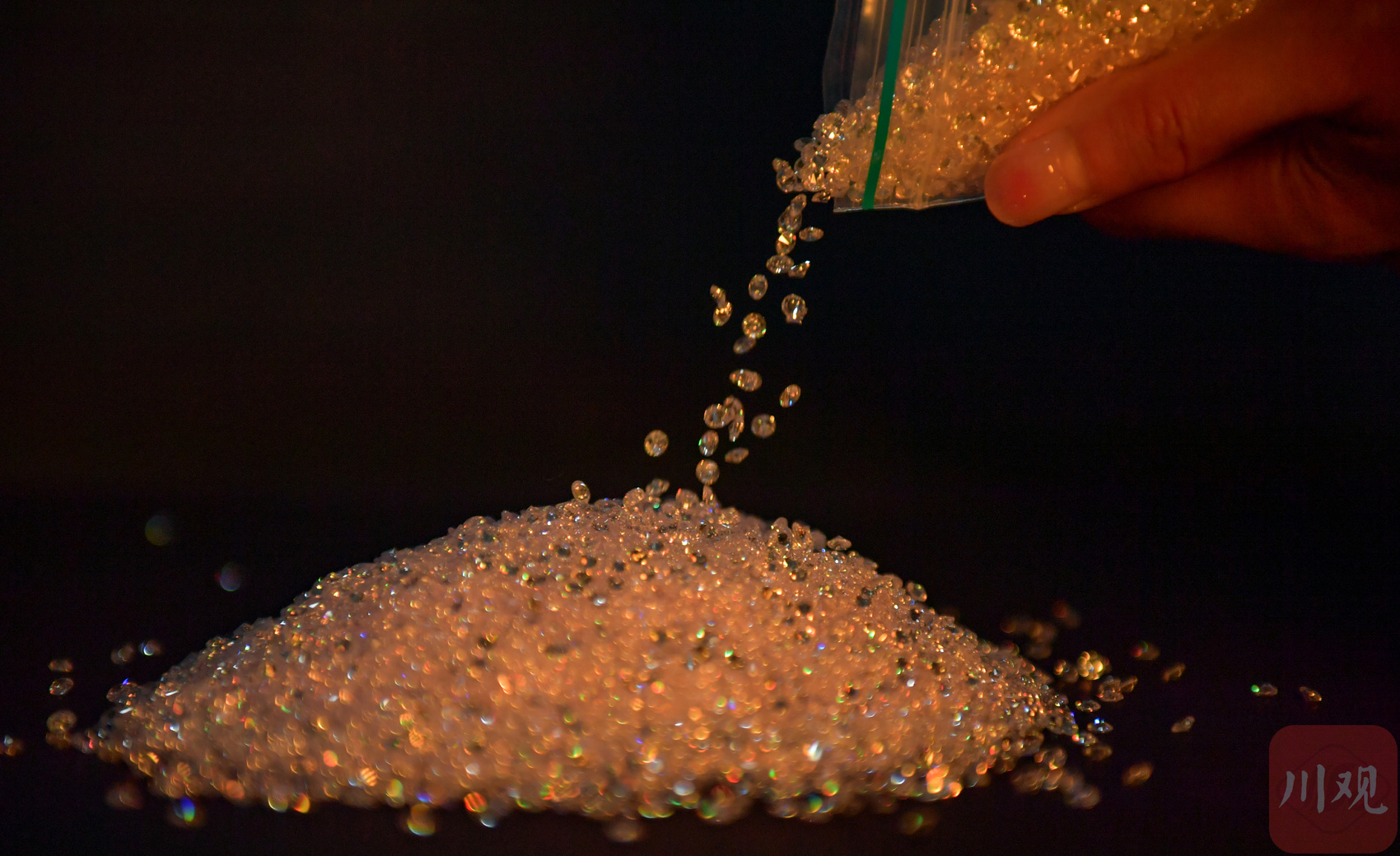 “锆石其加工工序繁杂严苛,需历经熔炼,切割,选蒙,CCD 分选等20余个生产流程,每个环节都需精准把控、精细操作,方能保障最终产品的优良品质。”四川鸿泰锆业有限公司相关负责人介绍,公司现已形成多元产品矩阵,可生产黑、白、橙、褐、绿及无色透明等10余种颜色的锆石产品,最小尺寸仅0.8毫米,广泛应用于首饰、钟表、服饰等高端饰品领域。目前公司锆石年产量近万吨,年产值达3.5亿元,“汶川造”锆石产品已远销巴西、俄罗斯、印度、巴基斯坦等10多个国家和地区,深受海外市场青睐。