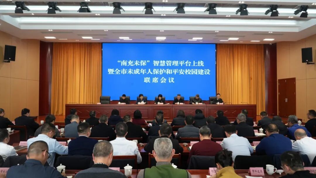 “南充未保”智慧管理平台上线暨全市未成年人保护和平安校园建设联席会议。图据 南充融媒