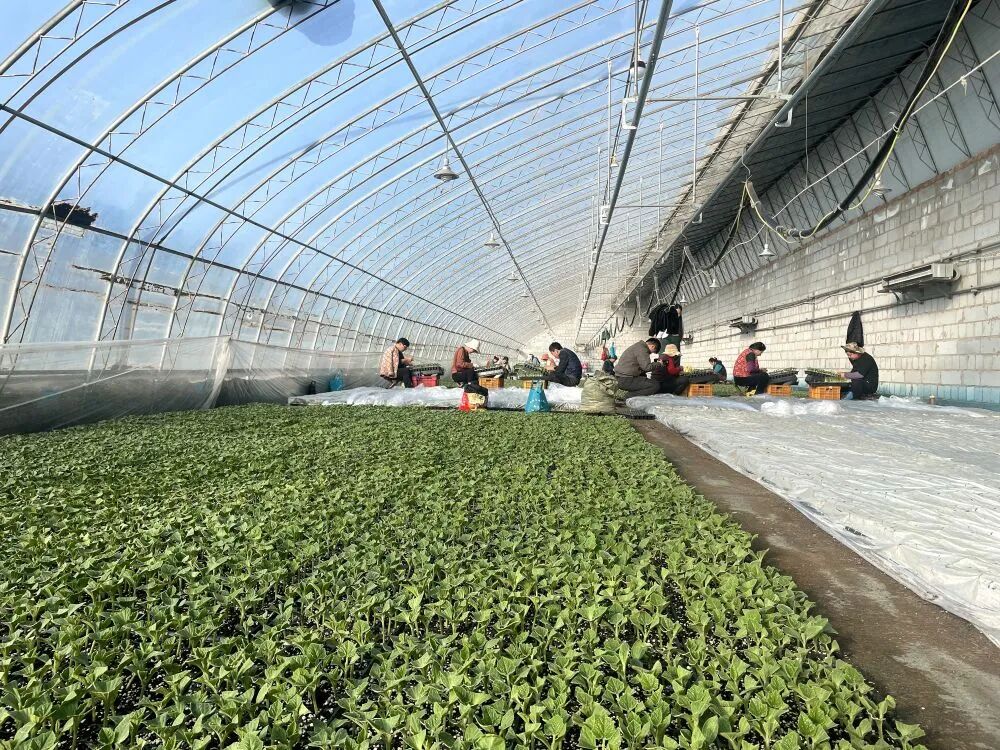 银川鸿盛果蔬种植专业合作社的育苗基地,工人们正忙着将培育完成的吊瓜苗穴盘装袋打包,准备运往园林村、和顺新村、泾龙村等地的设施温棚进行栽种。