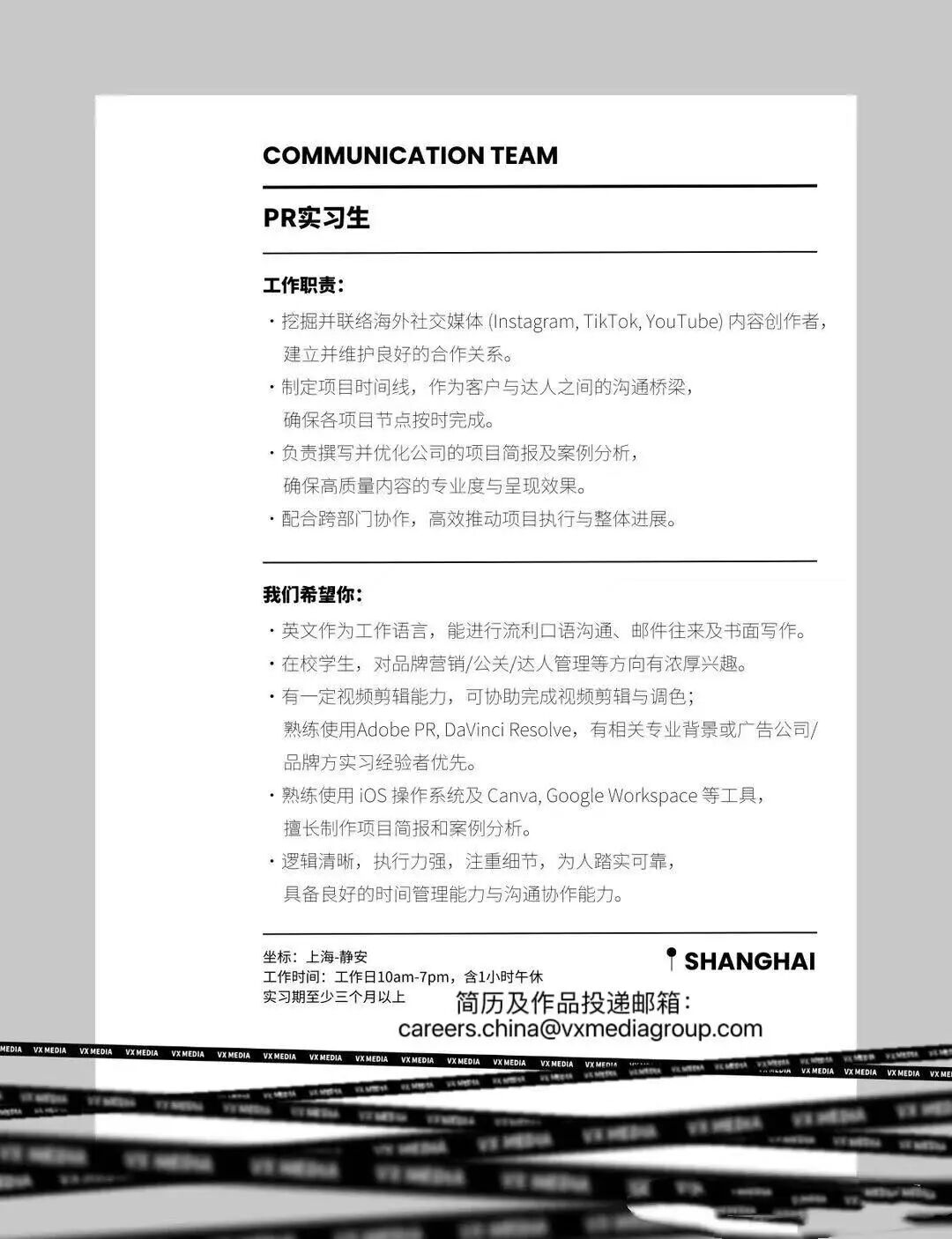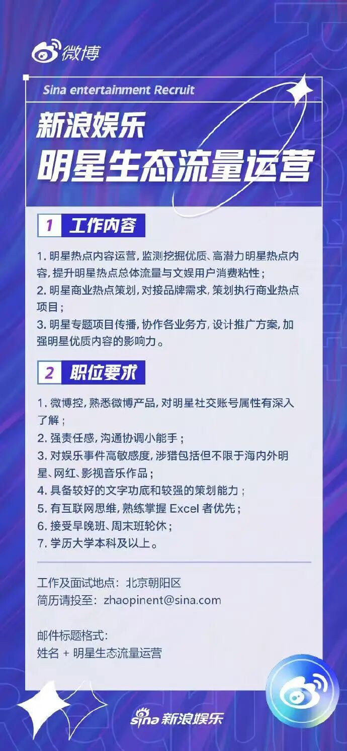 4、 统招本科及以上学历,热爱影视行业,广告学、市场营销、传媒类相关专业优先;