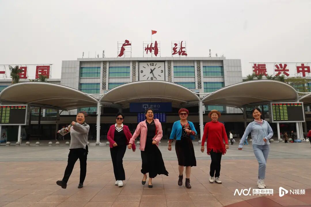 1月20日下午,在广州站开阔的站前广场,有专程前来拍照留念的“师奶团”,也有正准备乘车前往三亚的旅客,临行前在此驻足留影。