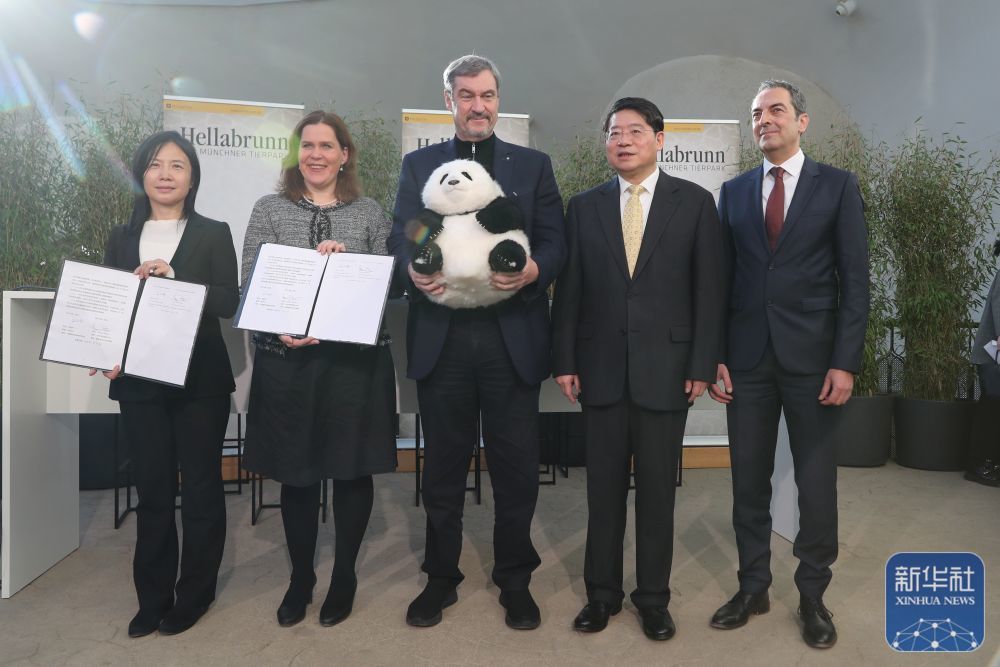 这是1月21日在德国慕尼黑海拉布伦动物园拍摄的协议签署仪式现场。新华社记者 杜哲宇 摄