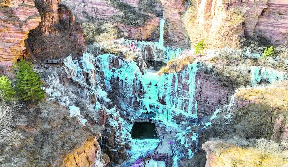 “我们依托嶂石岩得天独厚的自然优势,打造冰柱、冰雕、冰瀑等景观,广受游客青睐。”嶂石岩景区营销部经理焦彤告诉记者,“同时,我们升级了嶂石岩景区冻凌背梦幻冰谷,新增十里桃花、柿柿如意、冰墙3处特色场景,配套云崖咖啡屋、雪乡小屋、雪国列车等业态,形成‘观冰瀑—玩冰雪—品美食’的消费闭环。”