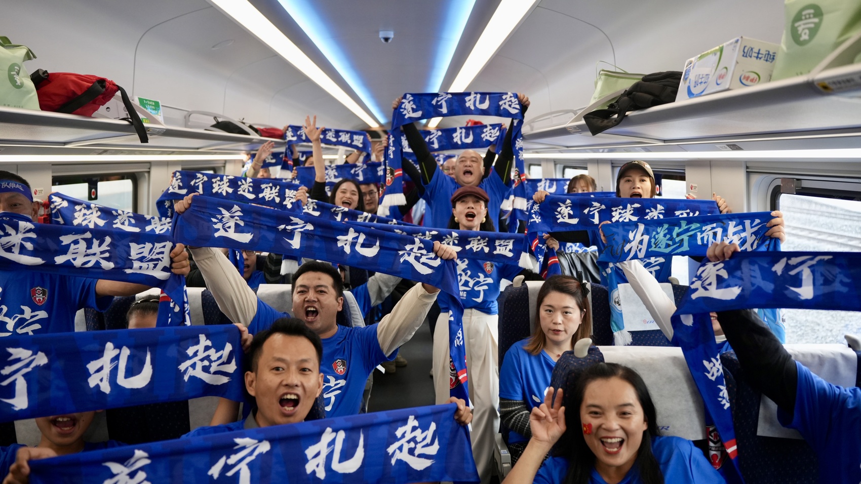 遂宁积极组队参加川超赛事,遂宁“舍得干”队声名远播,图为球迷搭乘专列赶赴客场为主队助威。