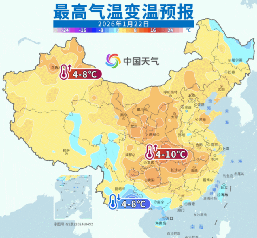 22日(周四):全省多云转晴天。