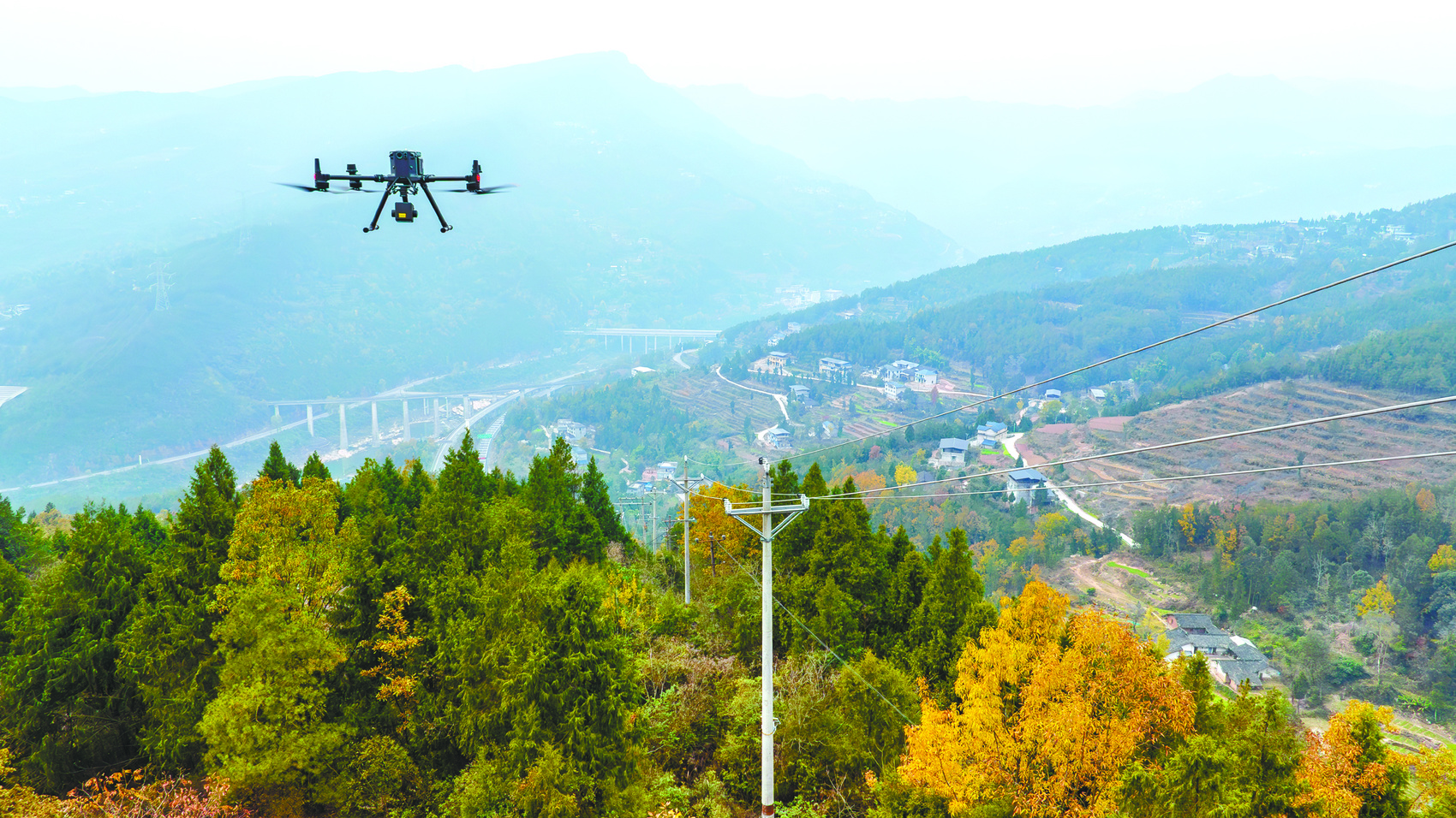 国网巴中供电公司利用无人机对电力线路进行安全巡视检查。王志刚 摄