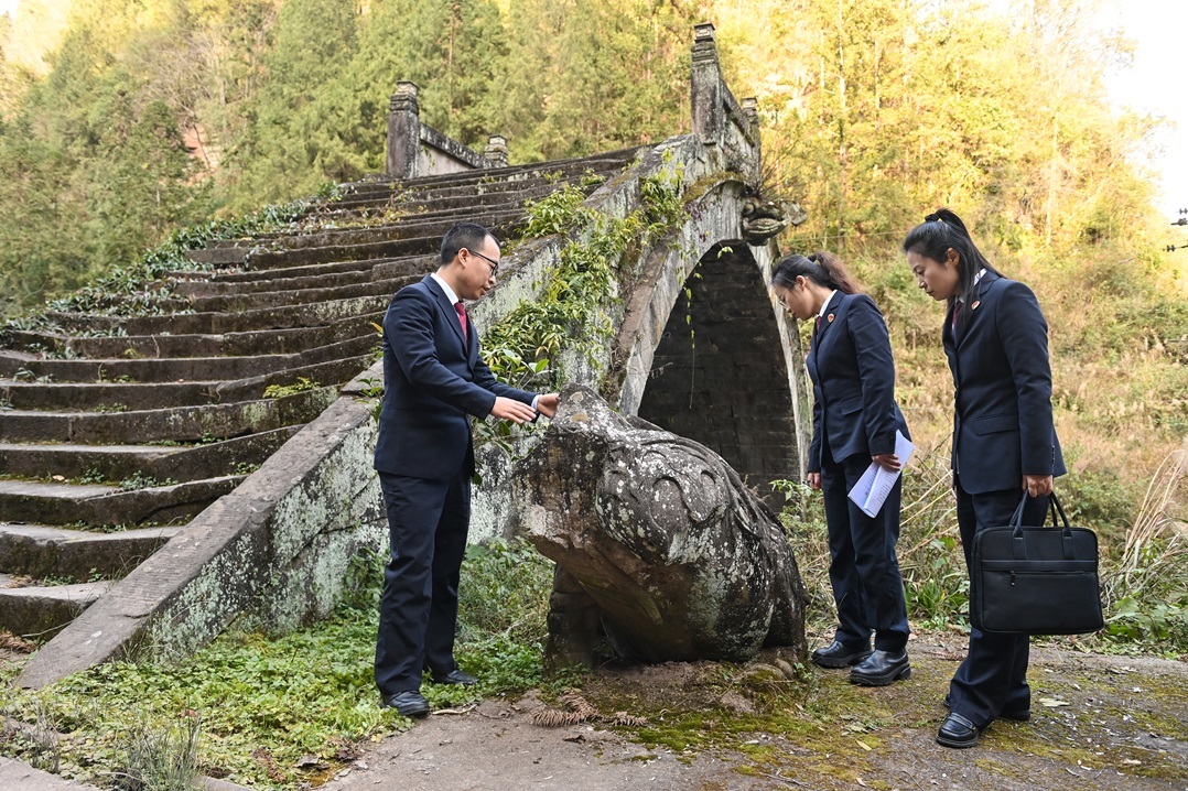 “嶙峋斑驳的青石板路,回响着远古快马的清脆蹄声;雕刻精美的石桥石墩,彰显了能工巧匠的精湛技艺;保存完好的古石墓群,积淀成千年以来的文化灵气;独具特色的四合古院,演绎出亘古不变的民俗风情”。近日,万源市检察院组织干警对万源市境内荔枝古道及沿线的古遗迹、古村落、古文物等保护工作进行了回访。“通过此次回访工作,我们发现,此前被盗掘的古墓葬浮雕、石狮子、墓葬内部文物已全部追回,被损坏的古建筑已得到了保护。这些见证了巴蜀文明的古道遗迹,在刑事追诉、检察公益检察建议与行政监管的协同发力下,得以完好保护。”万源市检察院副检察长何仕毅说。