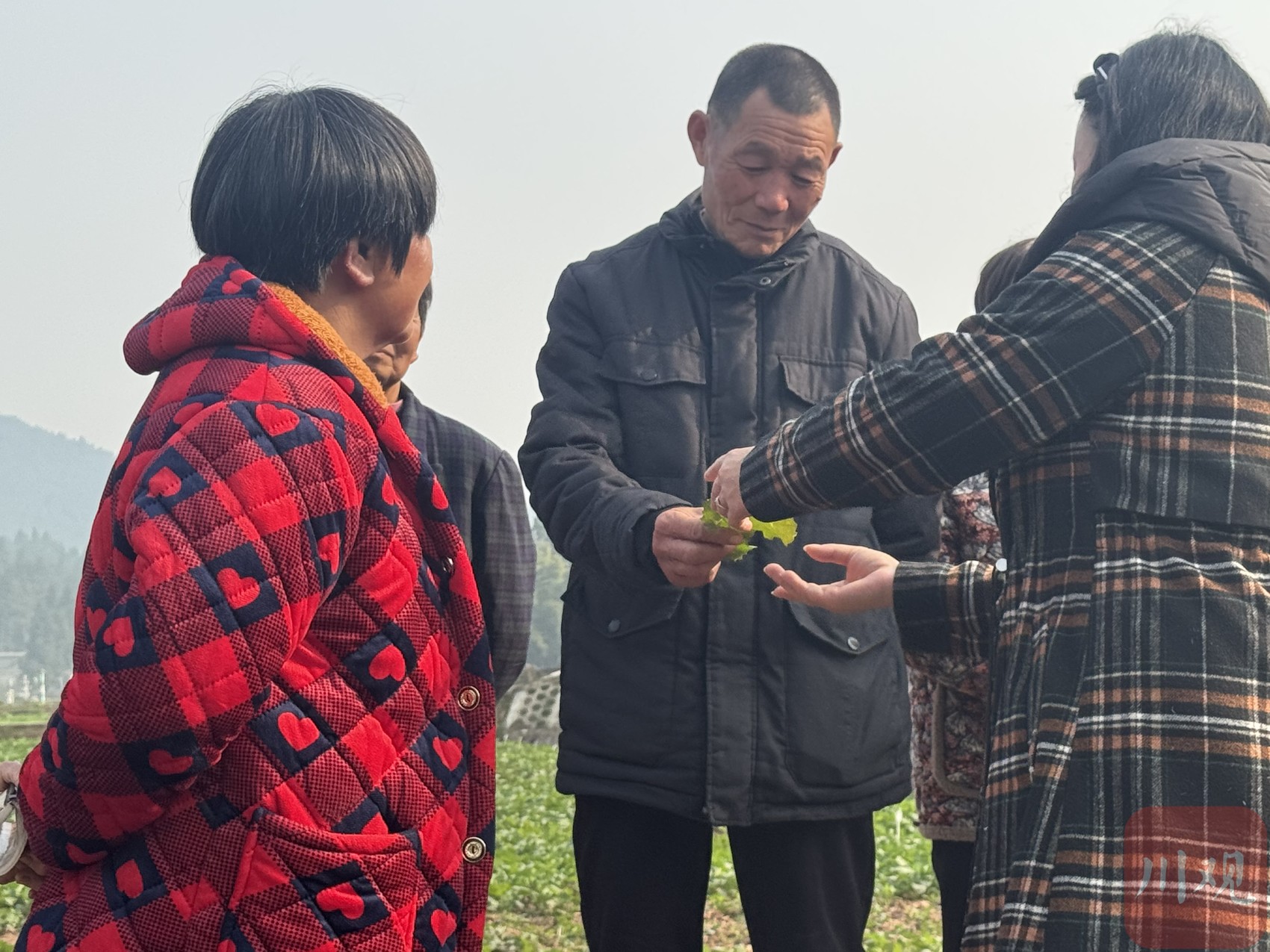 田间讨论的姚道明和王玉