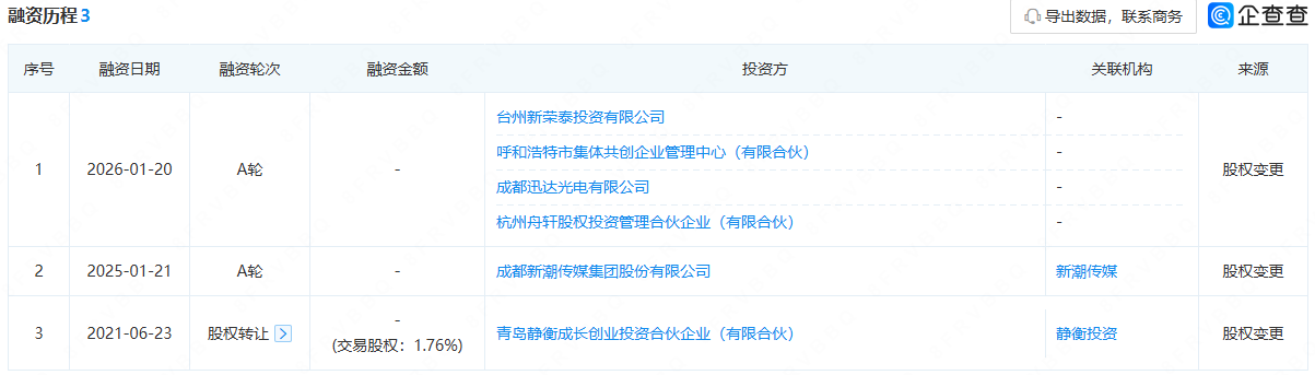值得注意的是,来自成都的产业资本也参与了本轮融资。投资方之一的成都迅达光电有限公司,是成都知名光学元件企业——成都晶华光电科技股份有限公司(证券简称“晶华光电”)的全资子公司。晶华光电成立于1995年,2022年在全国中小企业股份转让系统挂牌,主要从事光学元件、微型投影光机及光学玻璃、光学毛坯、光学镜头的研发、生产和销售,是国内少数能够覆盖微型投影光机以及相关产品的全产业链企业。