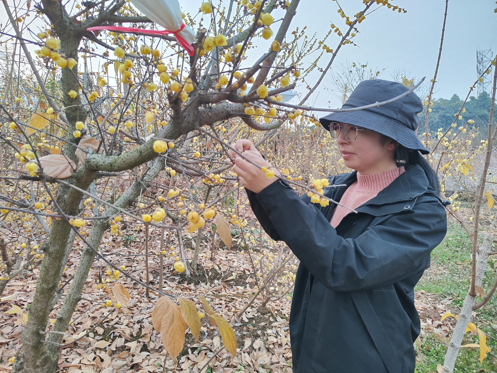 在蜡梅花资源圃里,200余种蜡梅次第开放,花香四溢。在一株花朵盛开的蜡梅前,四川省农业科学院园艺所园林花卉中心研究员宋兴荣正手持相机认真拍照,看似赏花,实则是在做科研记录。“这段时间,又有一些品种开花,照片可以准确记录它的花型、花色等性状特征。”