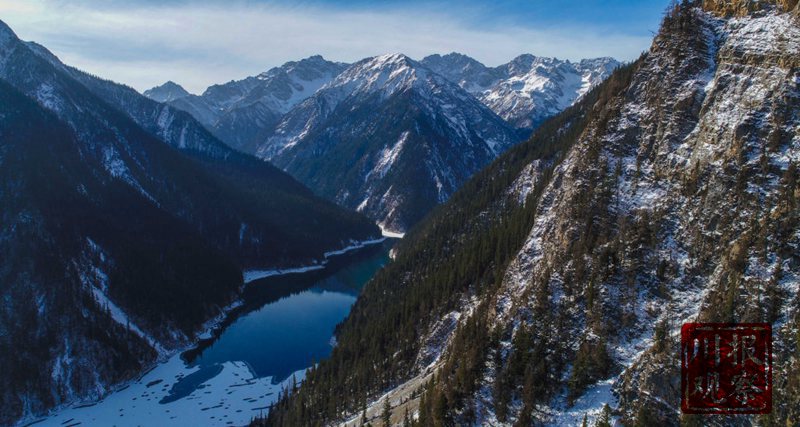 冬天的九寨沟在冰雪的映衬下,银装素裹、玲珑剔透。
