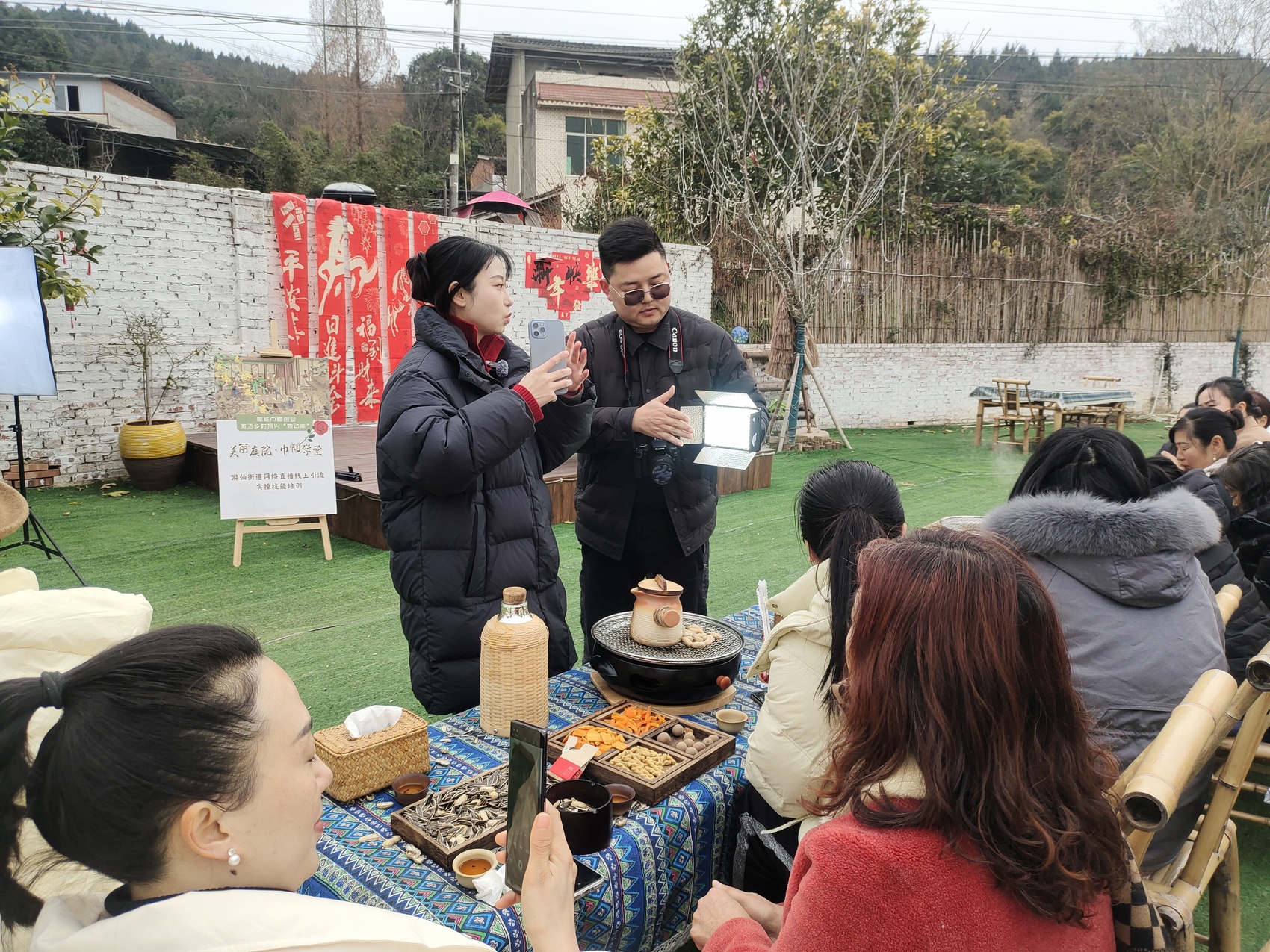聚焦“如何用短视频呈现庭院景致”“怎样通过直播话术引流文旅消费”等实操难题,现场授课老师还将课堂搬到庭院实景中,从镜头运镜到互动技巧进行一对一指导,30余名妇女带头人认真倾听、仔细操作、互动频频,现场学习氛围浓厚,培训成效显著。