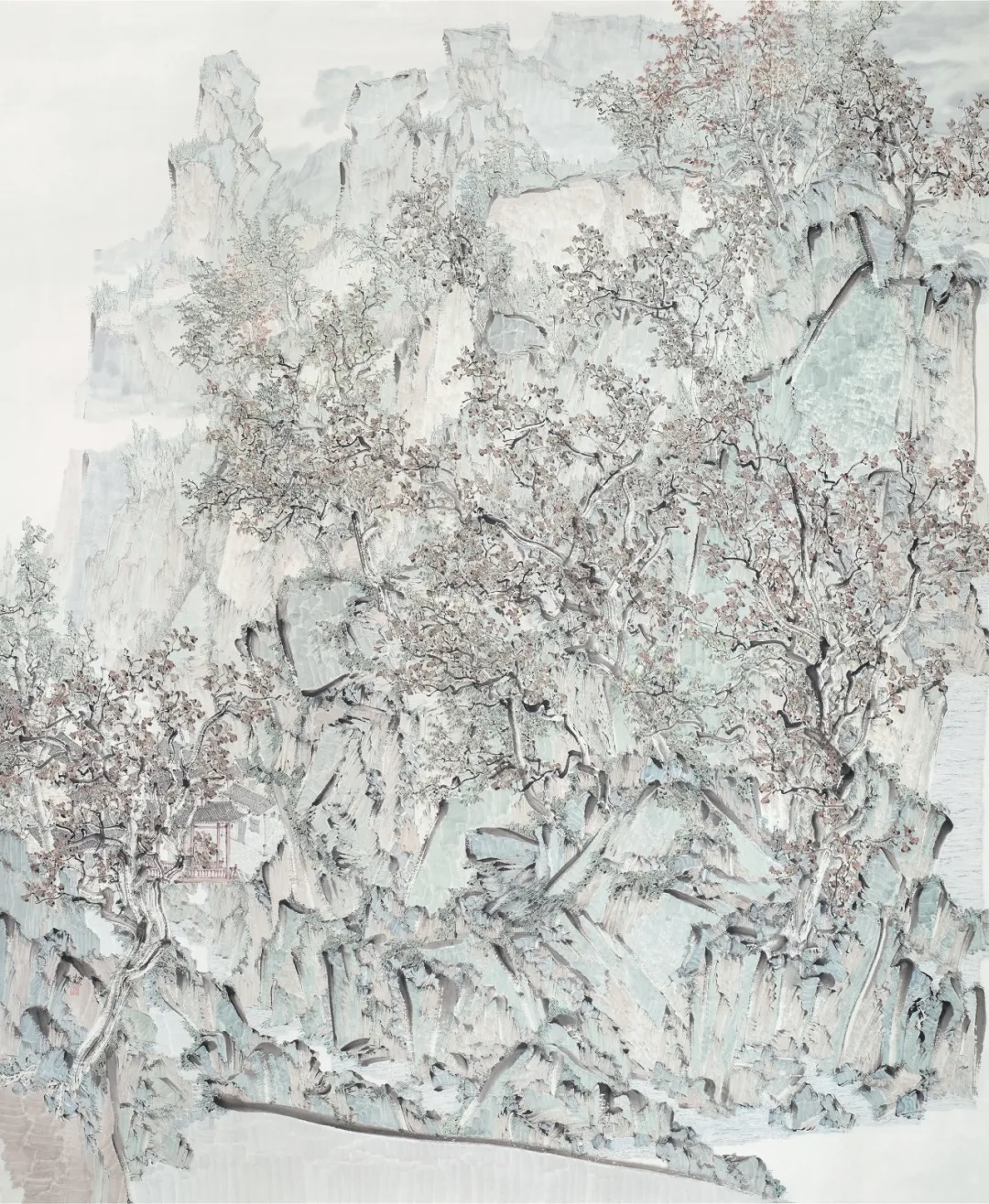 村树连溪口(中国画),尺寸:233cm×193cm,付红 作