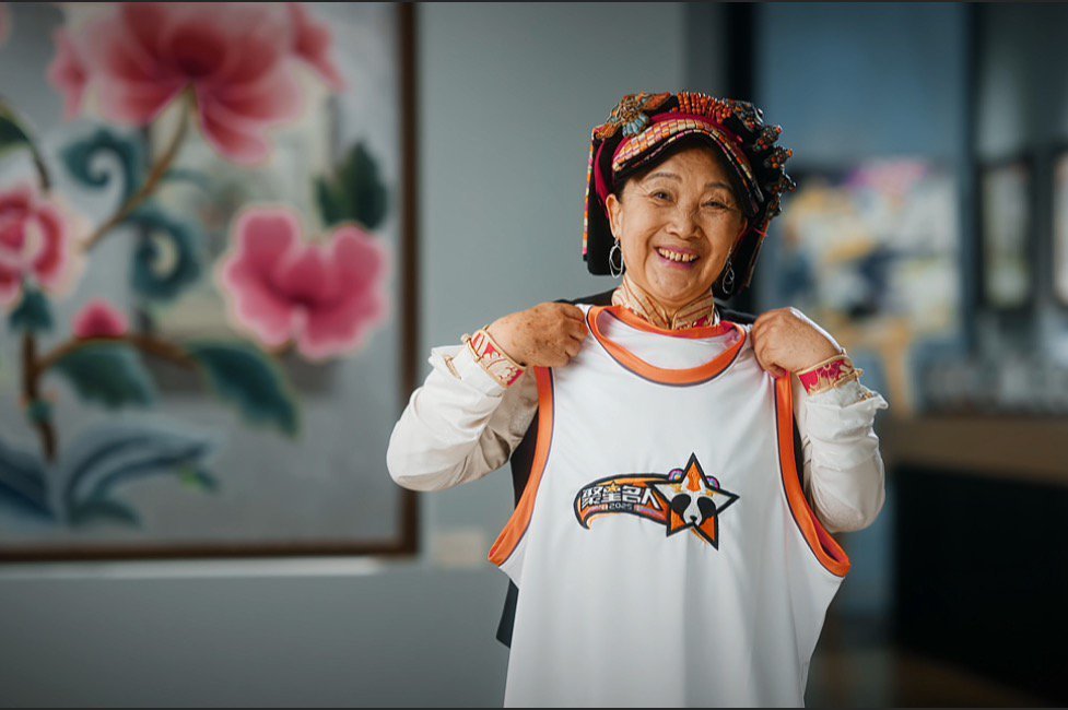 羌绣熊猫印在了NBA成都活动的篮球服中。挑花刺绣工艺国家级非物质文化遗产传承人杨华珍供图