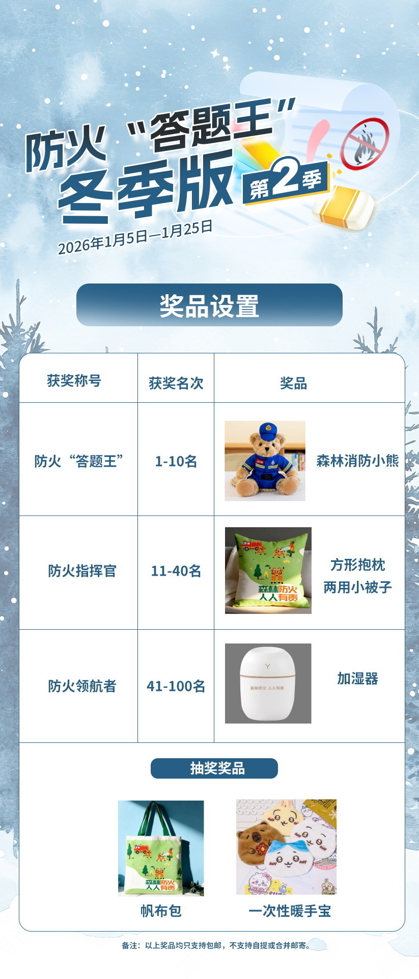 最后三天,快来参与!1月23日,防火“答题王”挑战赛冬季版进入最后三天,冲锋号已经吹响,屏幕前的你一定要抓住最后的机会,答题目,赢奖品。