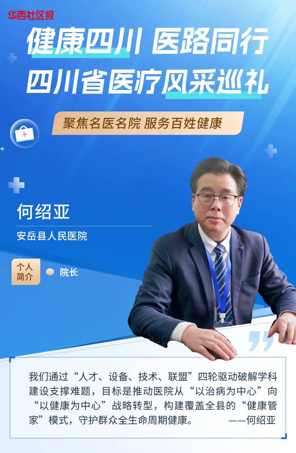 目前,安岳县人民医院正致力于从“以治病为中心”向“以健康为中心”的战略转型。