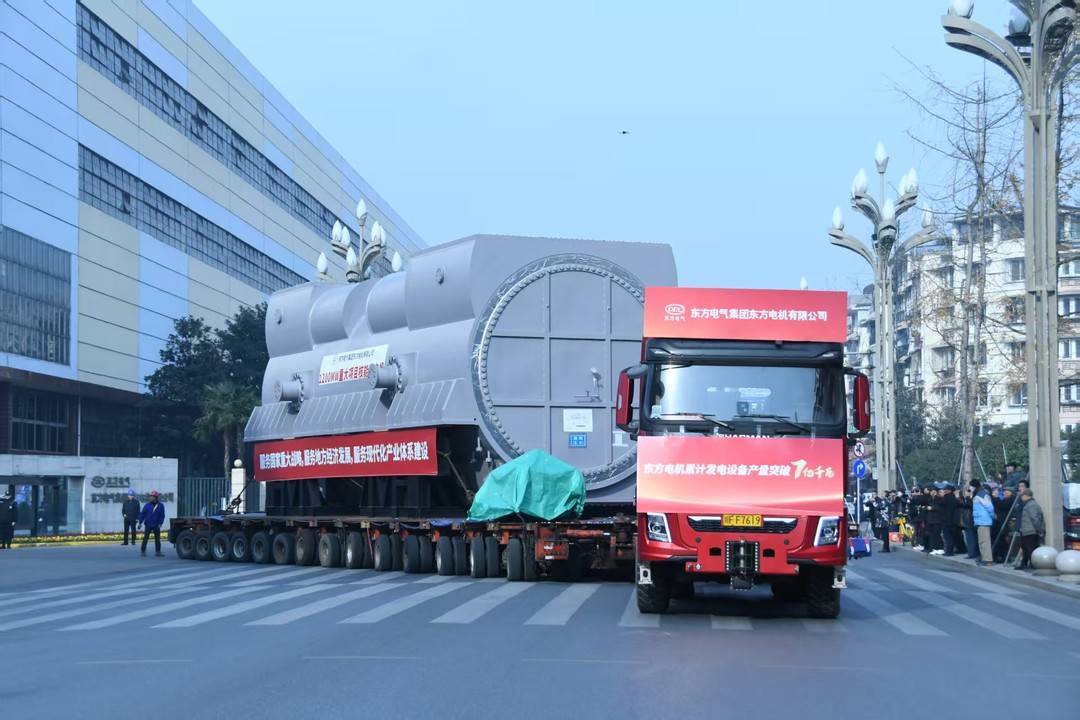 一台台四川造大件从东方电气集团东方电机有限公司的重跨厂房运出(企业供图)