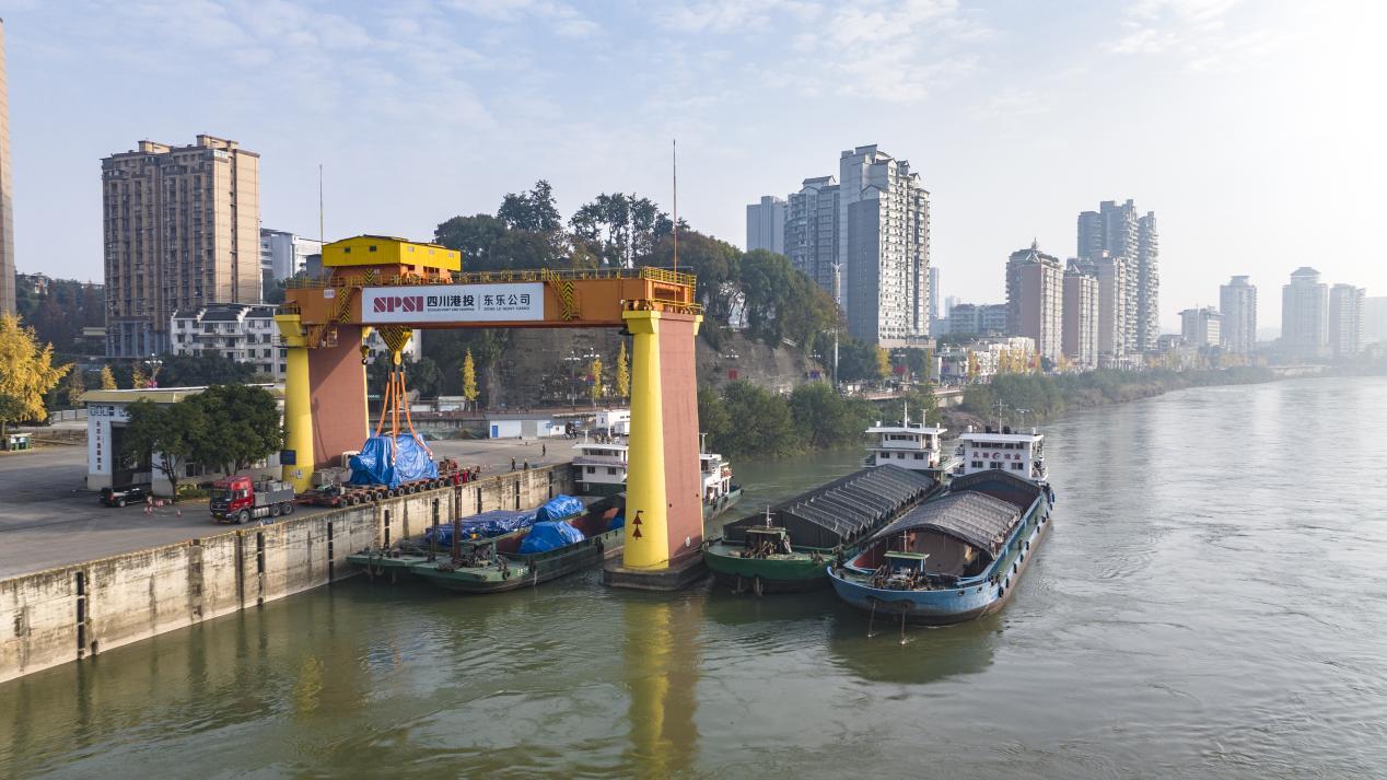 近日,乐山大件码头,巨型桥吊将数台庞大的重型设备装载上船,汽笛鸣响,货船破浪驶向长江下游。至此,乐山水路运输迎来重要突破:水运货运量首次突破500万吨,创10年来新高,水路货运在全市综合运输体系中的占比已达15%,“公转水”运输结构调整成效显著。