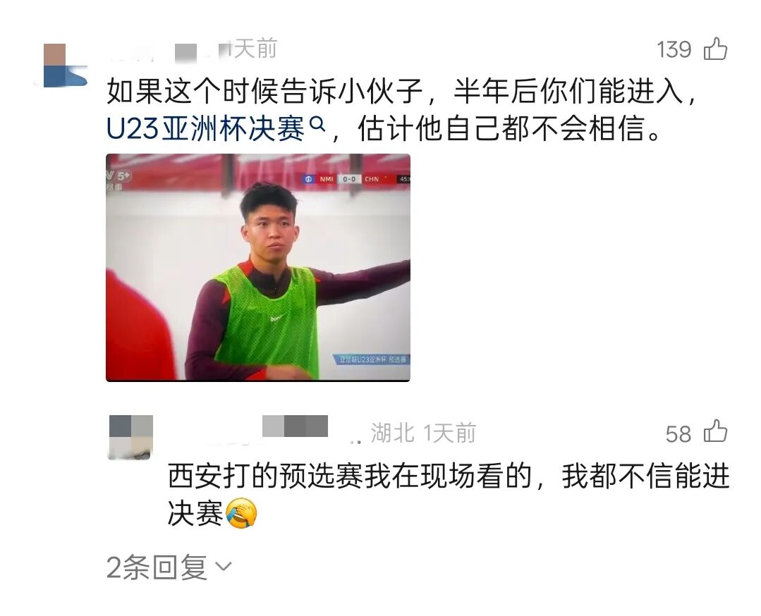 比赛结束后,U23国足球员刘浩帆、彭啸、王博豪、向余望冲着镜头怒吼宣泄,释放心中的激动。