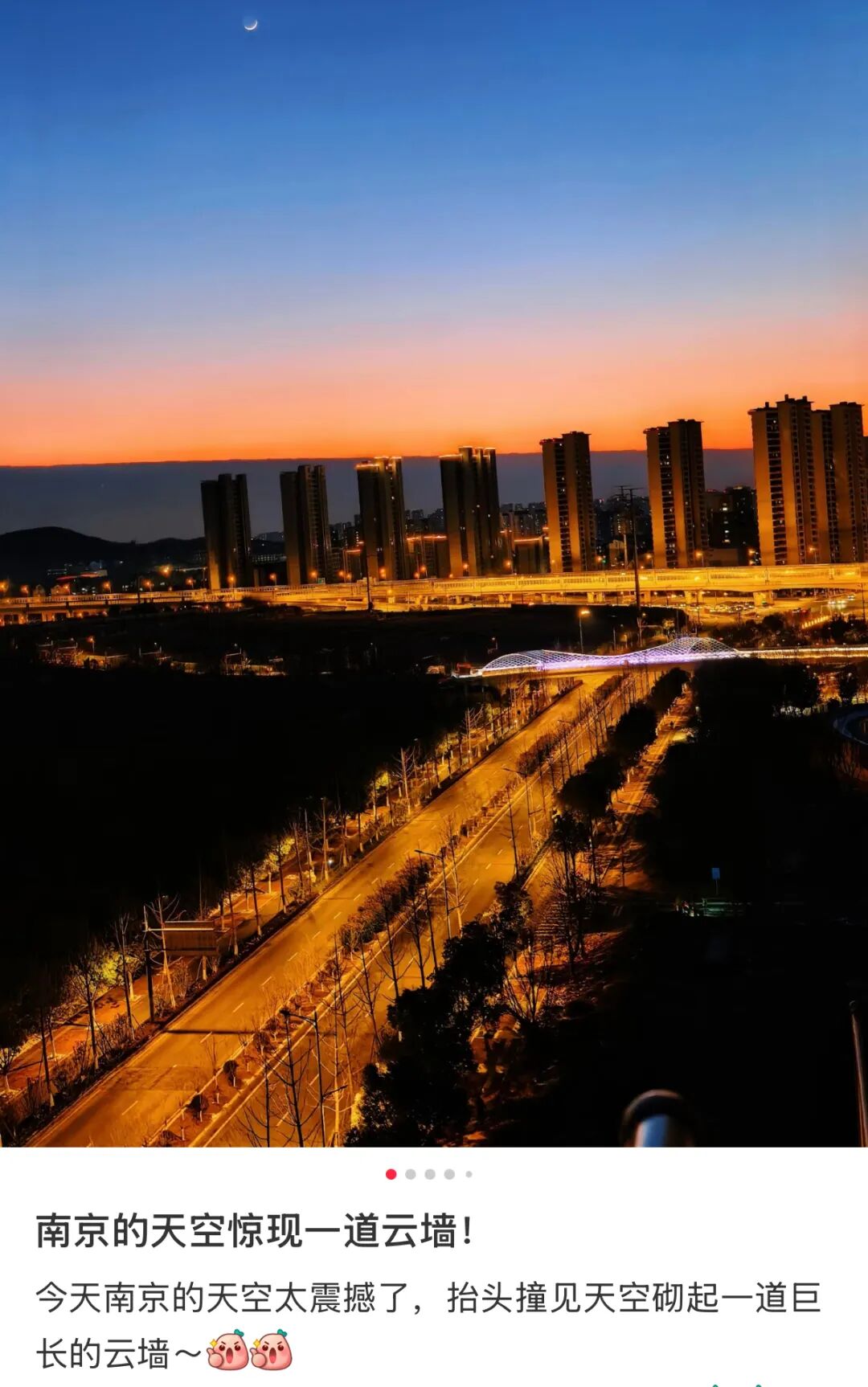 冷空气本身净化了空气,昨天17时南京国家基准气候站能见度超28KM,让云墙细节清晰可现。