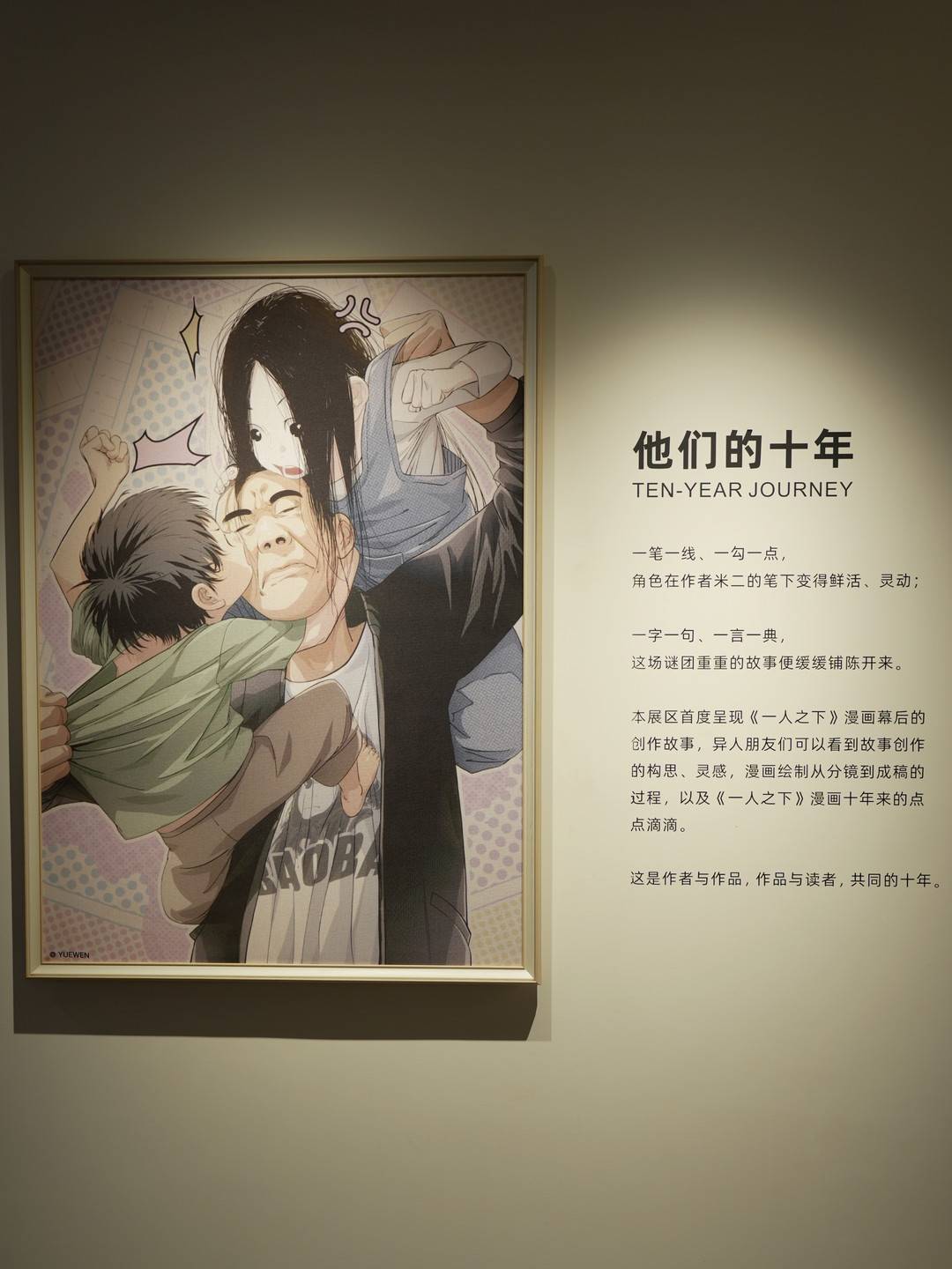 据该展览策划方相关负责人现场介绍,正值国漫产业高速发展之际,举办该展览是为纪念《一人之下》连载十周年。本次展览以漫画为核心,集内容展示、艺术观赏与互动体验于一体,打造沉浸式观展氛围。此次展览既是对这部里程碑式作品创作本源的追溯,也是对IP自漫画诞生,至由乌尔善、许宏宇等导演接力进行影视化改编,由彭昱畅等演员赋予角色生命力这一完整发展历程的一次系统回顾。