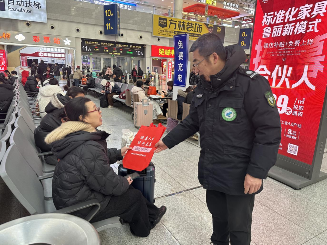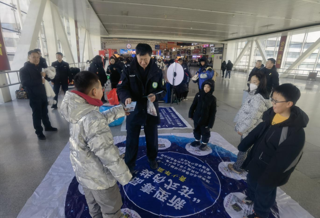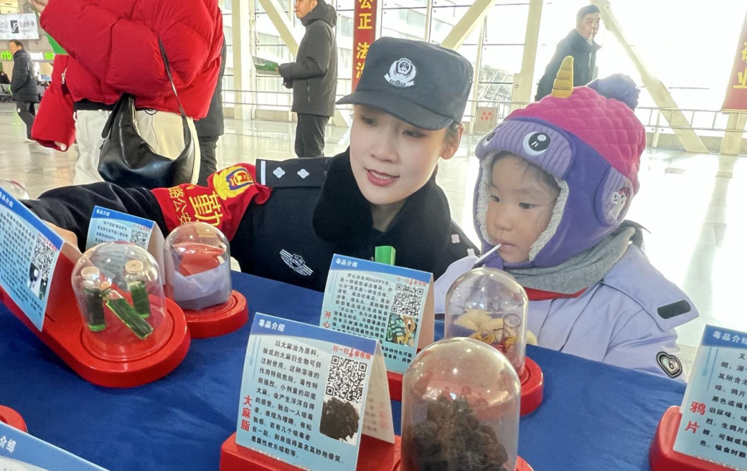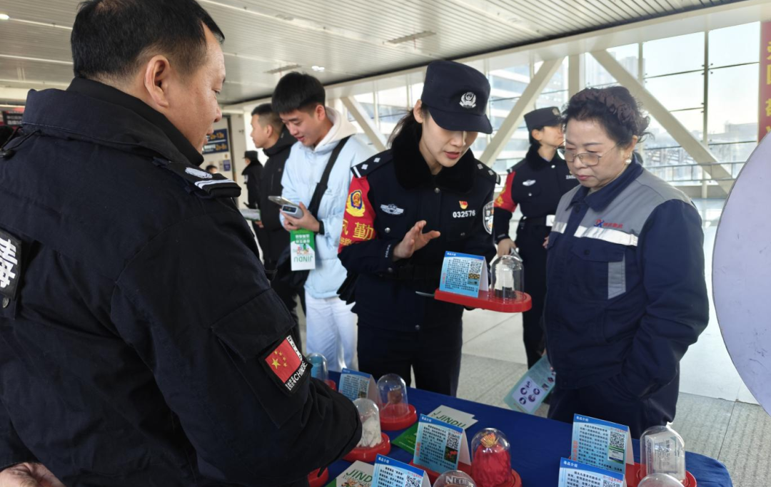 警察与禁毒社工组成宣传小分队,将宣传阵地延伸至候车大厅的人潮之中,通过发放禁毒反诈宣传手册、讲解毒品危害案例、普及识毒防毒技巧等方式,与过往旅客面对面交流,将禁毒知识送到群众身边。