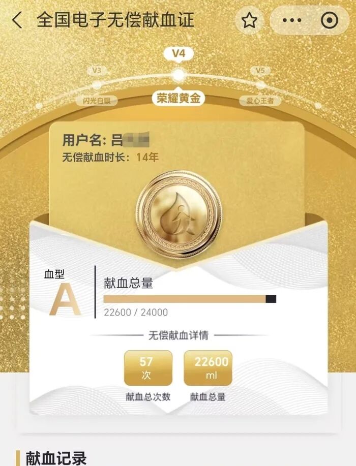 据报道,陕西西安市民吕先生表示,自己累计参与无偿献血57次,无偿献血累计达22600毫升。依据《西安市献血条例》,其持有的荣誉A卡可享受市属A级景区免票等优待。