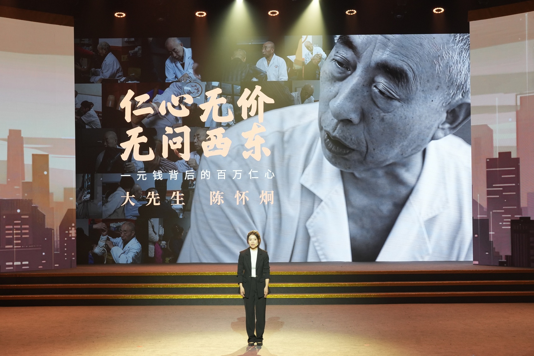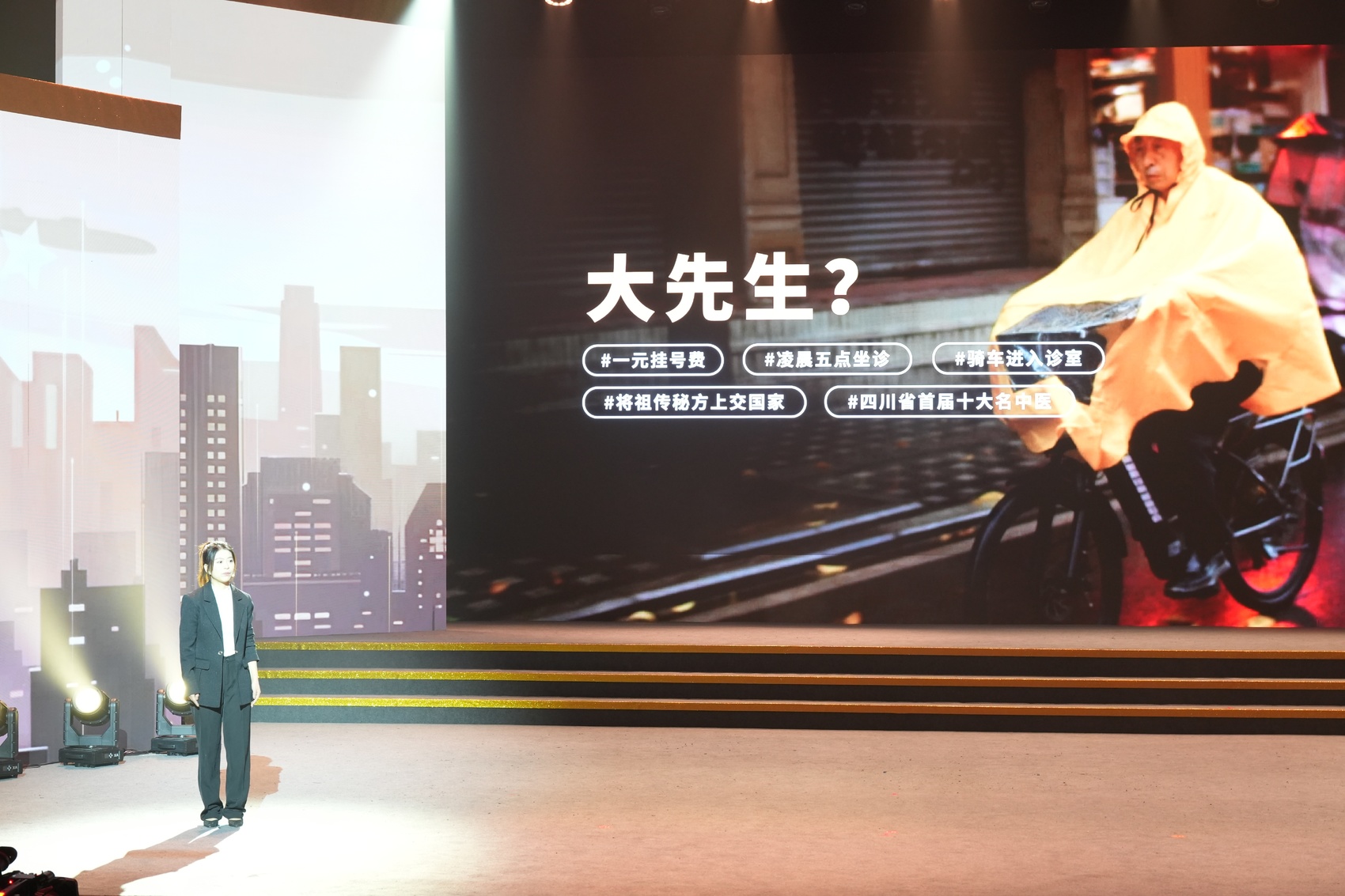 四川省天全县中医医院原院长陈怀炯,坚持1元挂号、3元膏药的诊疗费用,并将祖传诊所、独门秘方无偿捐给国家,服务患者超百万人次。图为记者现场讲述《仁心无价·无问西东》。漆世平 摄