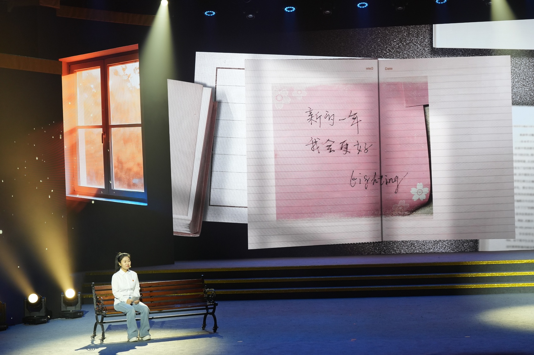 潘越幼年时父亲去世,母亲为智力残疾三级,20年来,她带着母亲四处求学,用柔弱的肩膀扛起了学习和家庭的重担。图为潘越在现场讲述《青春的日记本》。漆世平 摄