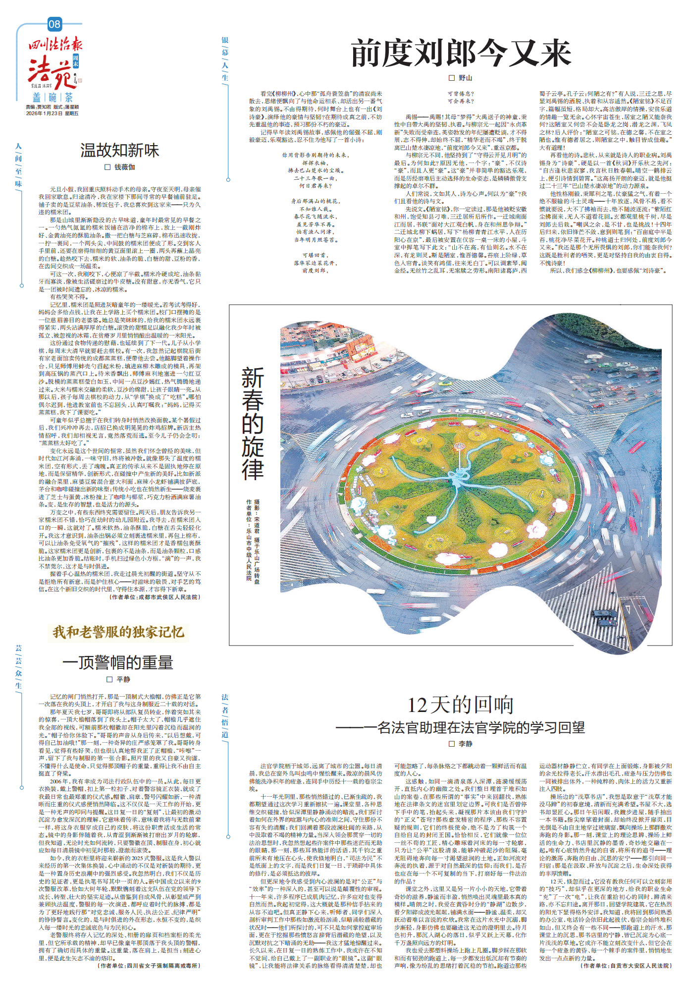 如今,我的衣柜里将迎来崭新的2025式警服。这是我入警以来经历的第一次集体换装,心中涌动的不仅是对新装的期待,更是一种置身历史浪潮中的强烈感受。我忽然明白,我们不仅是历史的见证者,更是执笔书写其中一页的人。新中国成立以来的9次警服改革,恰如大树年轮,默默镌刻着这支队伍在党的领导下成长、转型、壮大的坚实足迹。从借鉴到自成风骨,从彰显威严到兼顾执法温度,警服的每一次演进,都呼应着时代的脉搏,都是为了更好地践行那“对党忠诚、服务人民、执法公正、纪律严明”的铮铮誓言。变化的,是与时俱进的外在形态,永恒不变的,是织入每一缕时光的忠诚底色与为民初心。