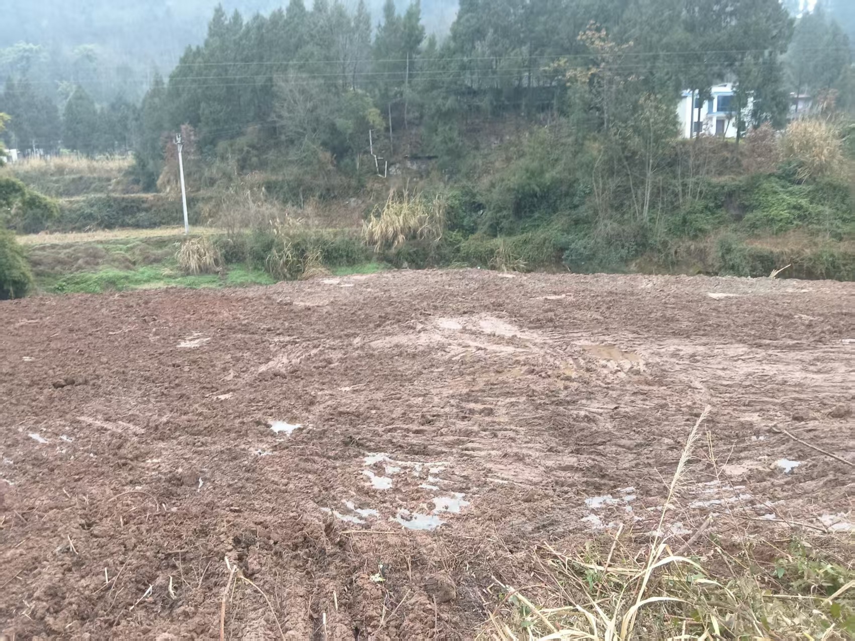 已经填平的土地。洞岩湾村供图