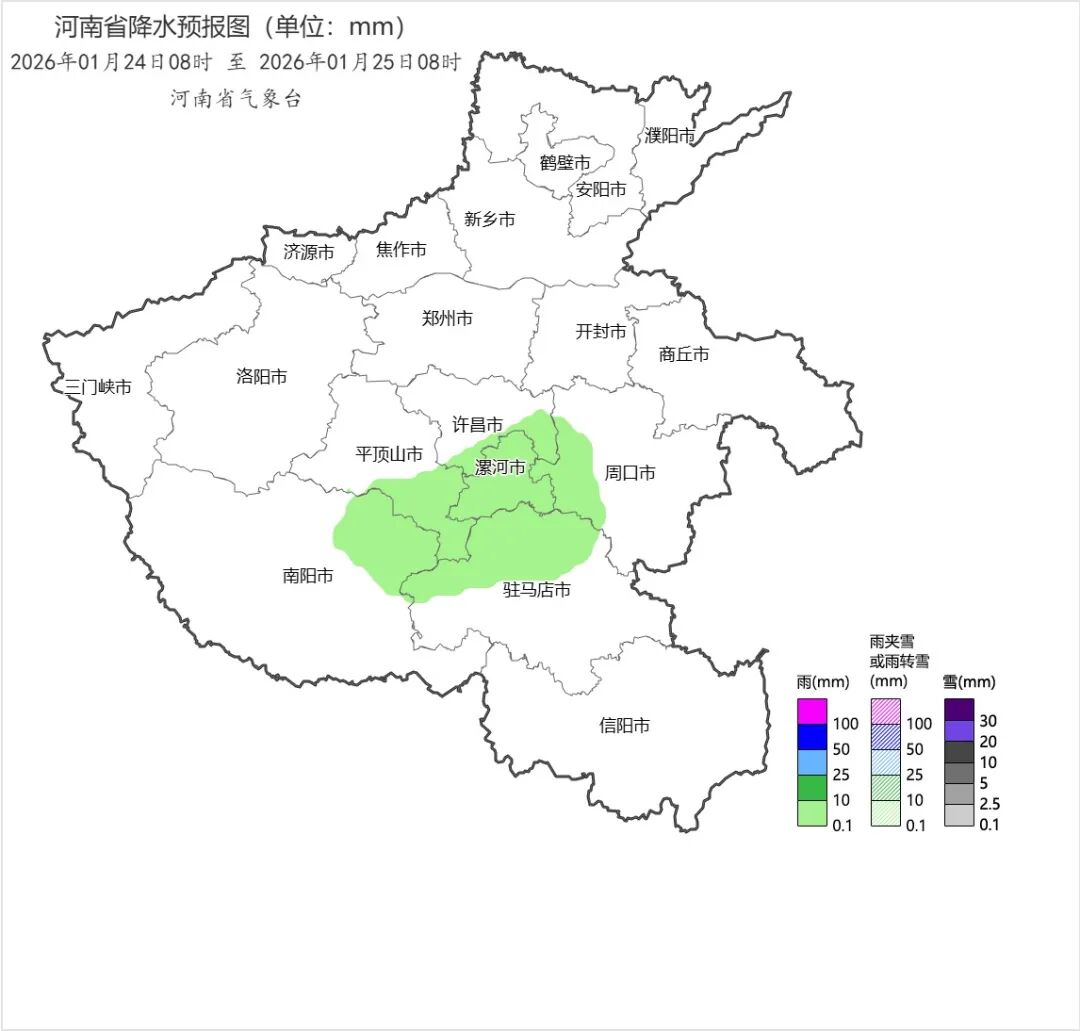预计24日夜里,中南部部分县(市、区)有零星小雨。25日,北部、西部有小雪,东南部有小雨或雨夹雪;其他县(市、区)小雨或雨夹雪转小雪,有短时冻雨。全省偏北风3到4级,阵风5到6级。